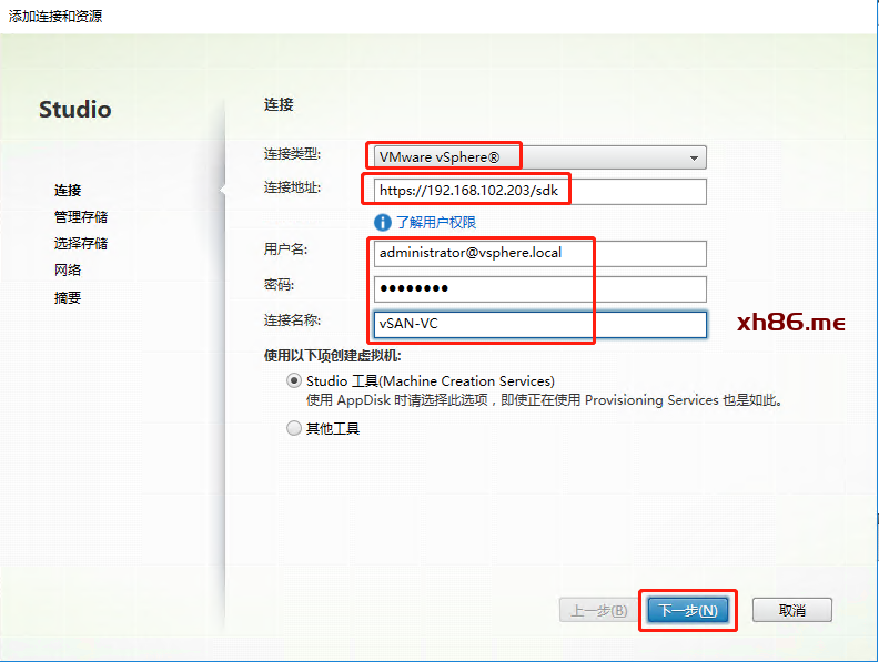 输入本地地址或名称,使用现在登陆的Citrix专用管理员帐号