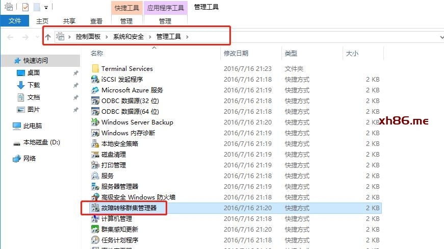 打开控制面板里的管理工具,双击“故障转移群集管理器”