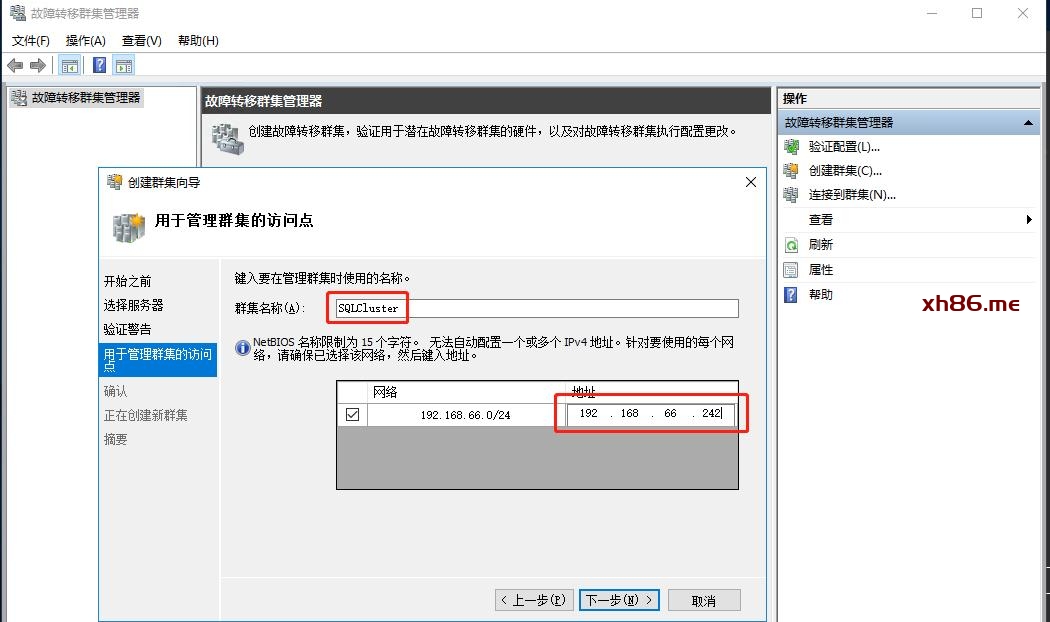 注:仅需要在SQL1、 SQL2、SQL3任意一台上配置如下的故障转移群集即可。
