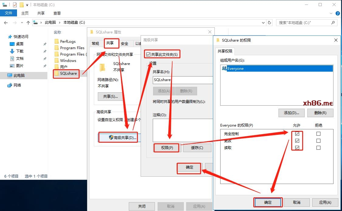 新建文件夹,并共享,共享权限 选择Everyone完全控制