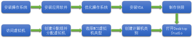 XenDesktop为客户提供两种基于不同技术线路的批量虚拟机创建方式,包括基于存储链接克隆模式的MCS (Machine Create Services)和基于网络引导的虚拟机批量创建模式。对于初学者或PoC环境中,如果存储IOPS和空间充实的情况下,我们建议使用MCS的方式进行批量的虚拟机创建,因为MCS简单、易学、易用,可以帮助您快速部署XenDesktop的虚拟桌面。