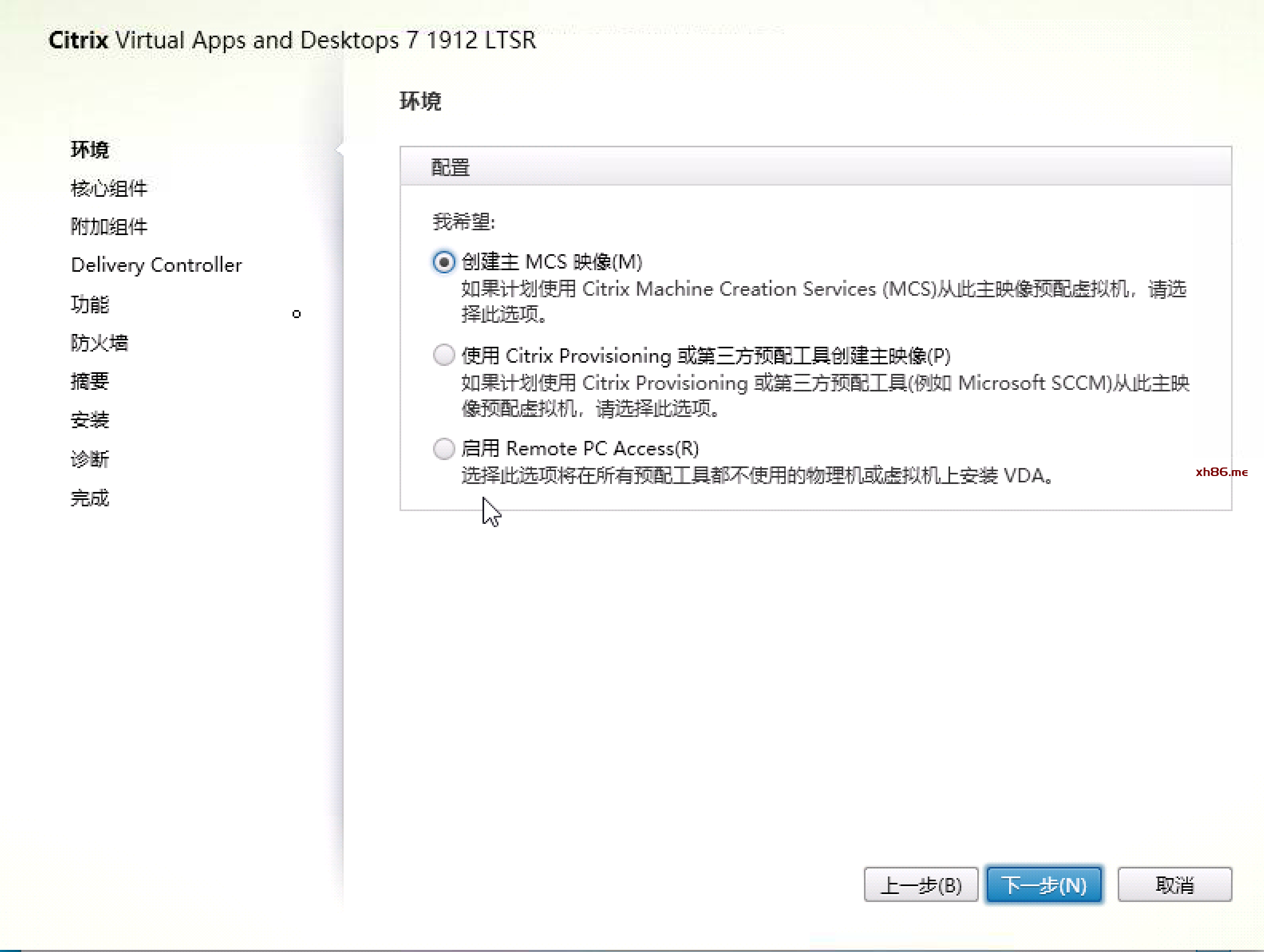 在出现的环境选择中请选择“创建MCS主镜像”,点击“下一步”。