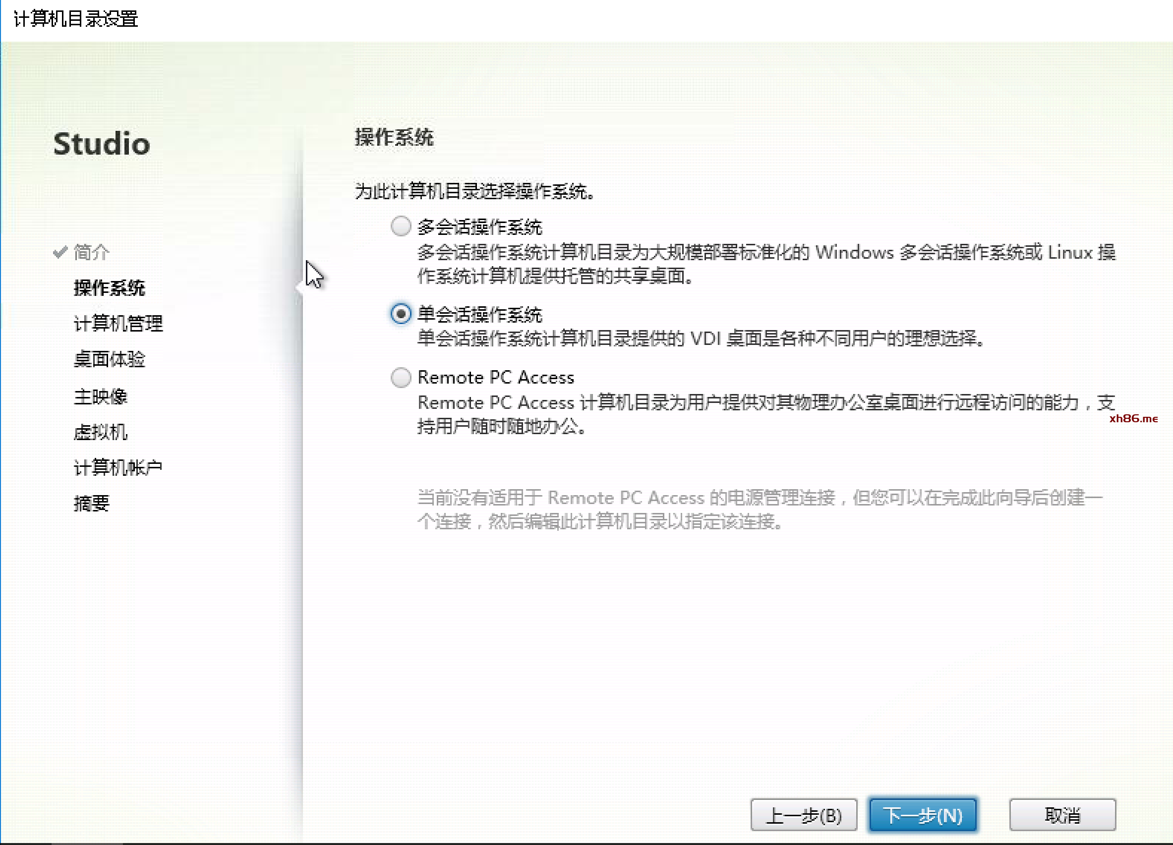 在“操作系统”类型中,请选择“单会话操作系统”,点击“下一步”。