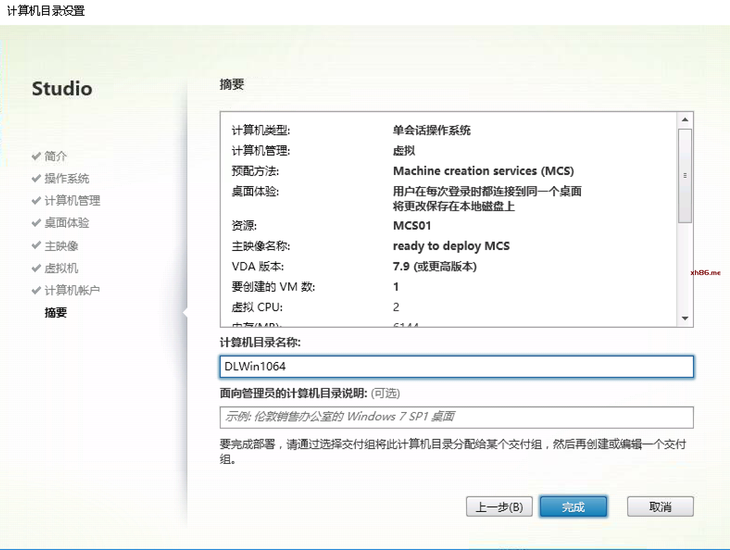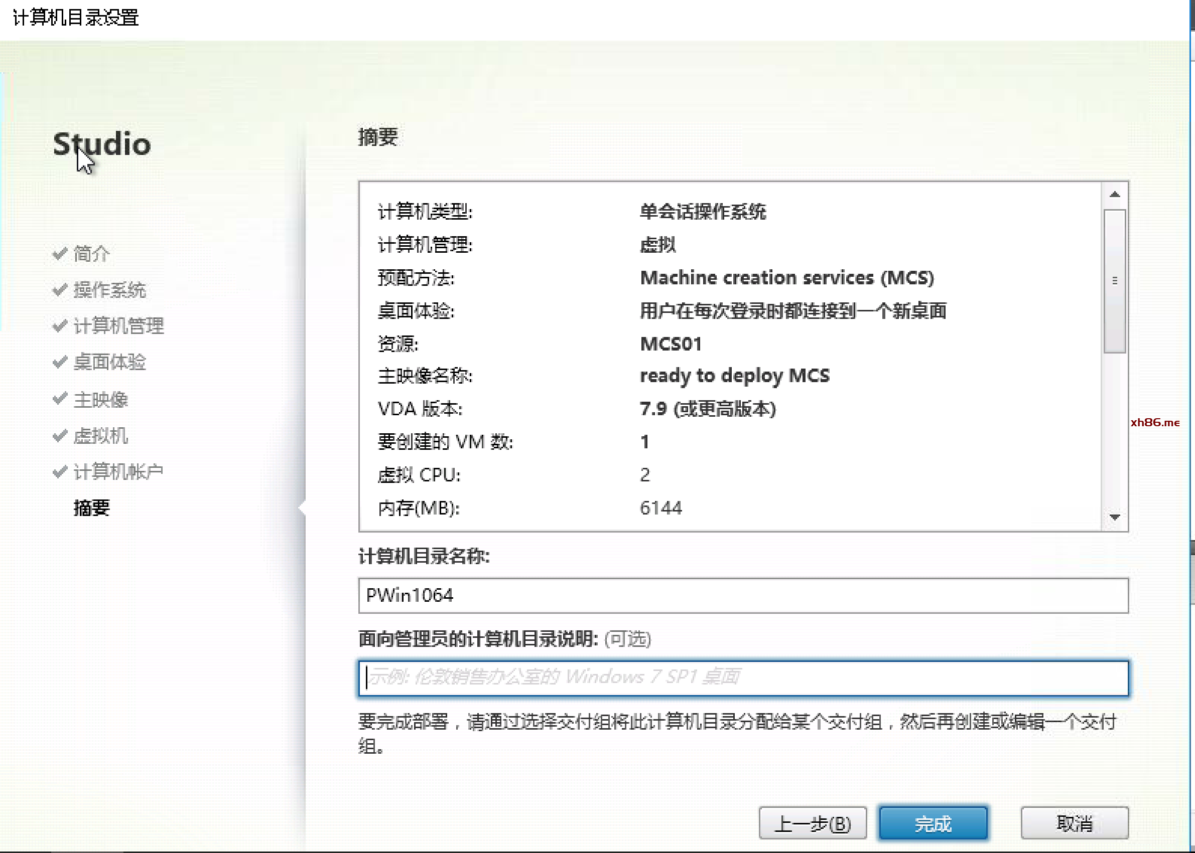 | 7 | MCS虚拟机命名规则,专用完整克隆:DFWin1064编号,DFWin1064## |