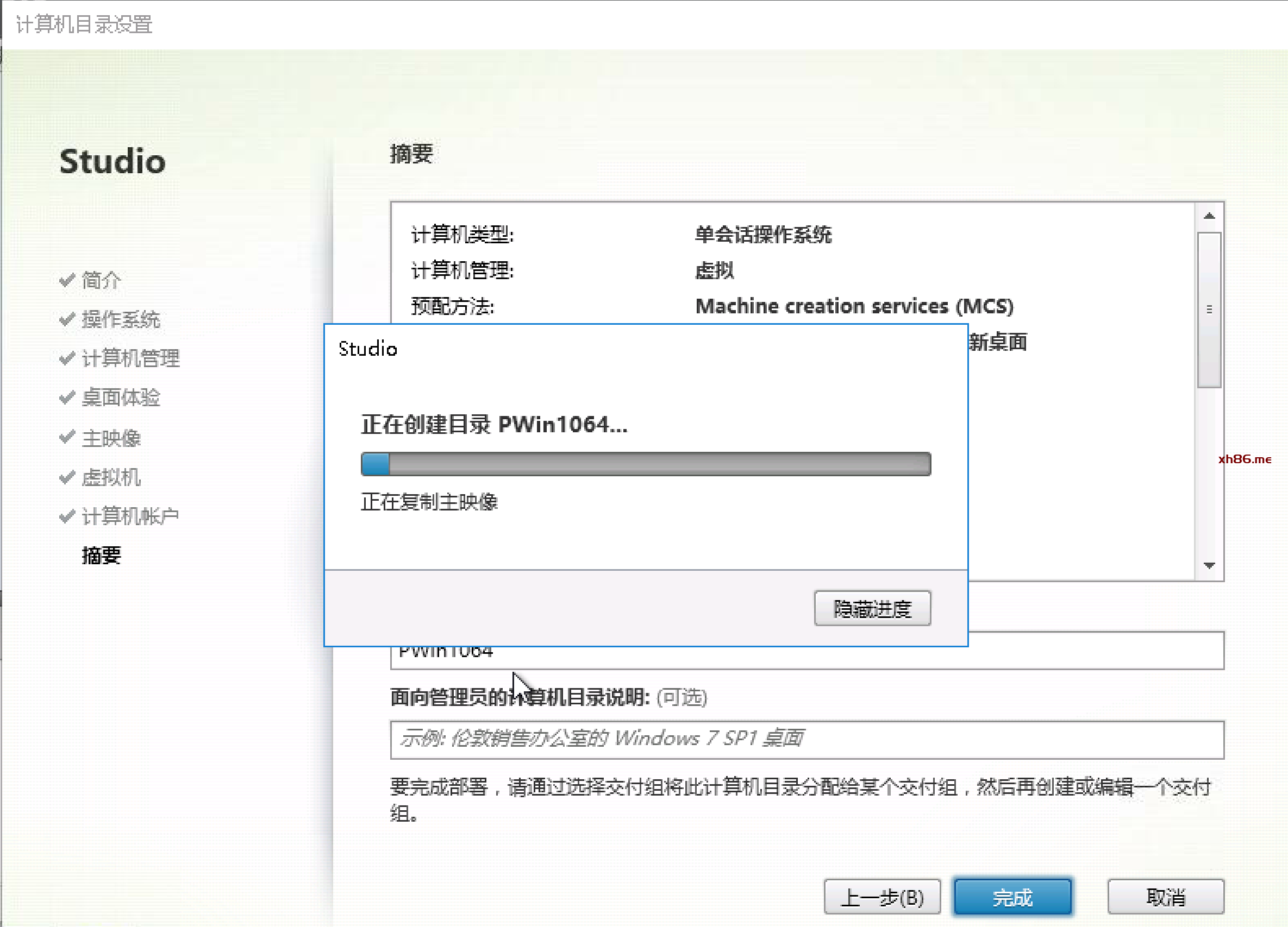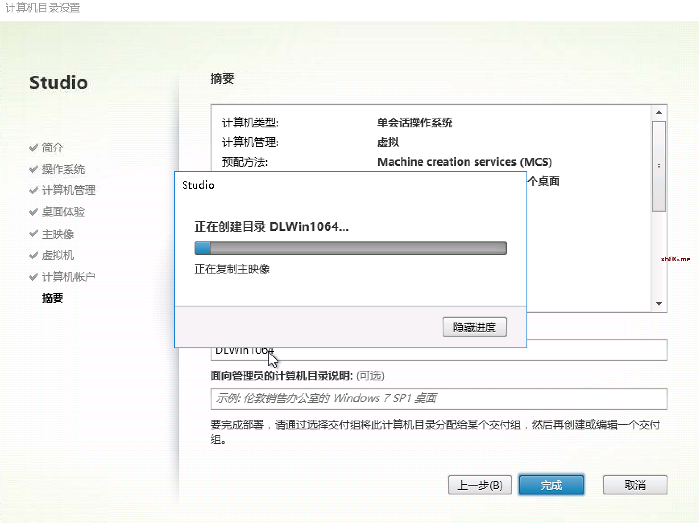 点击“完成”后,系统开始复制母镜像并创建虚拟机。