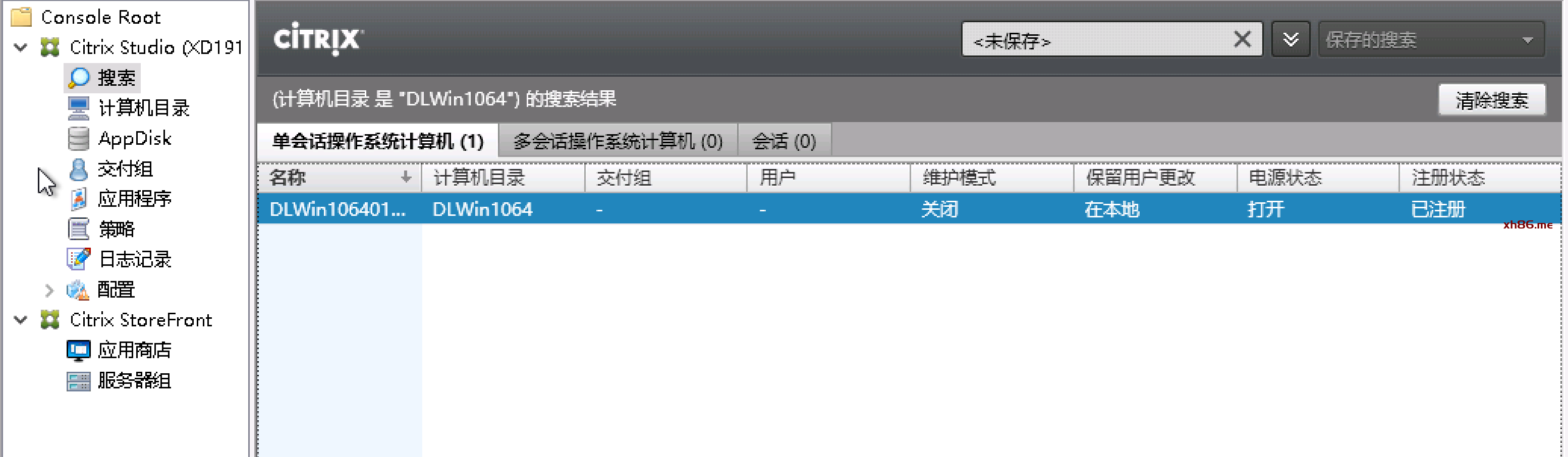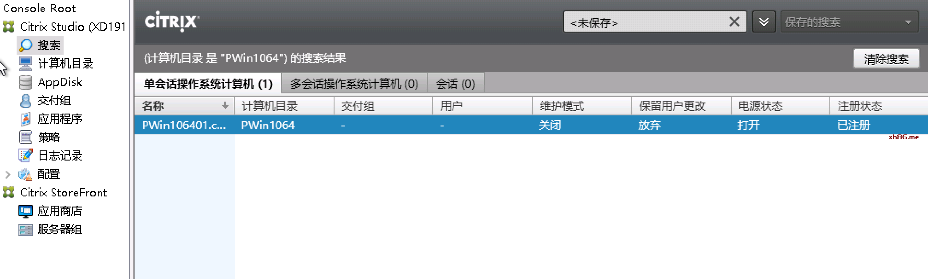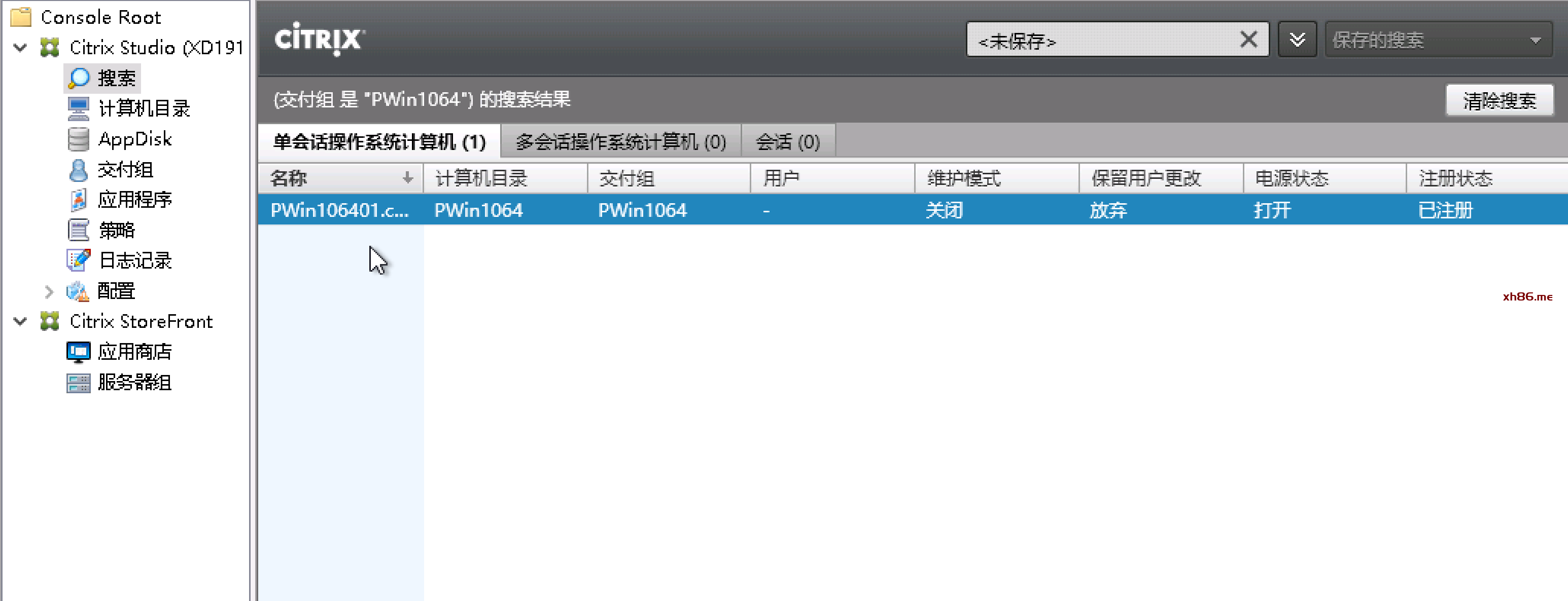 系统创建完成后,在XenDesktop Studio的计算机目录中会产生“PWin1064”的目录,双击这个目录后,可以列出所有的虚拟机。