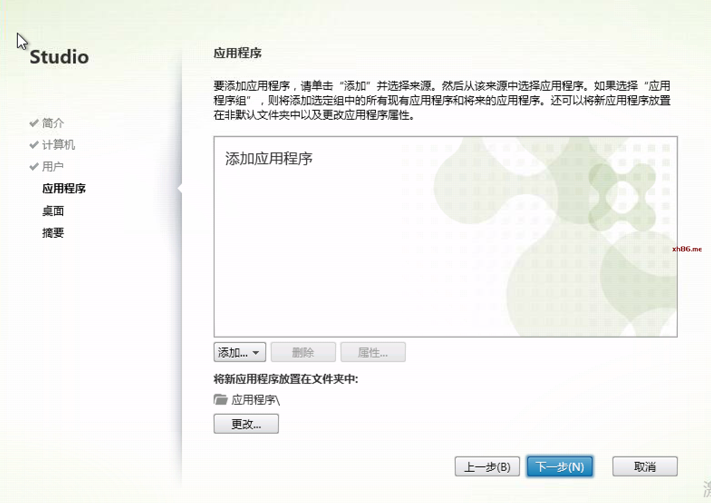 进入“应用程序”,直接点击“下一步”,不发布应用程序
