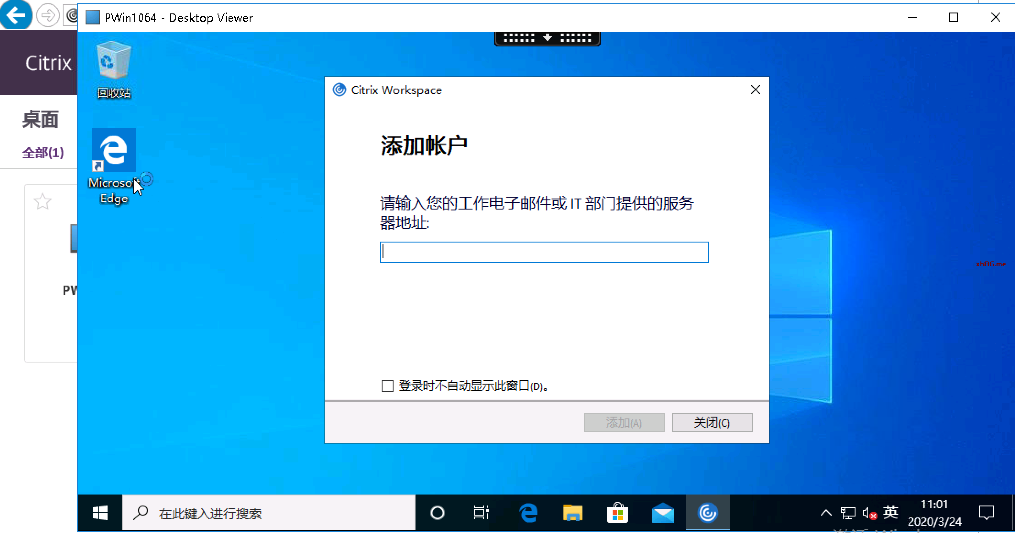 在一台已经安装好Citrix Receiver的计算机中,打开IE浏览器,输入StoreFront的地址,输入具有虚拟桌面权限用户名和密码,点击“登录”。