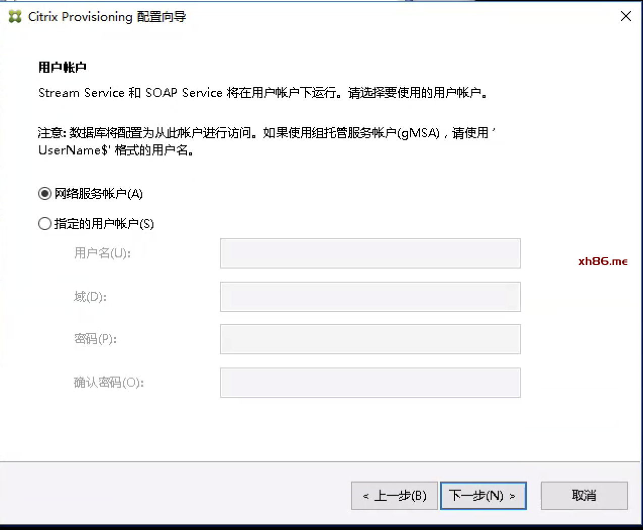 用户账户,测试环境可选择默认网络服务账户,生产环境建议创建单独的CVAD的Service 域账号进行管理。