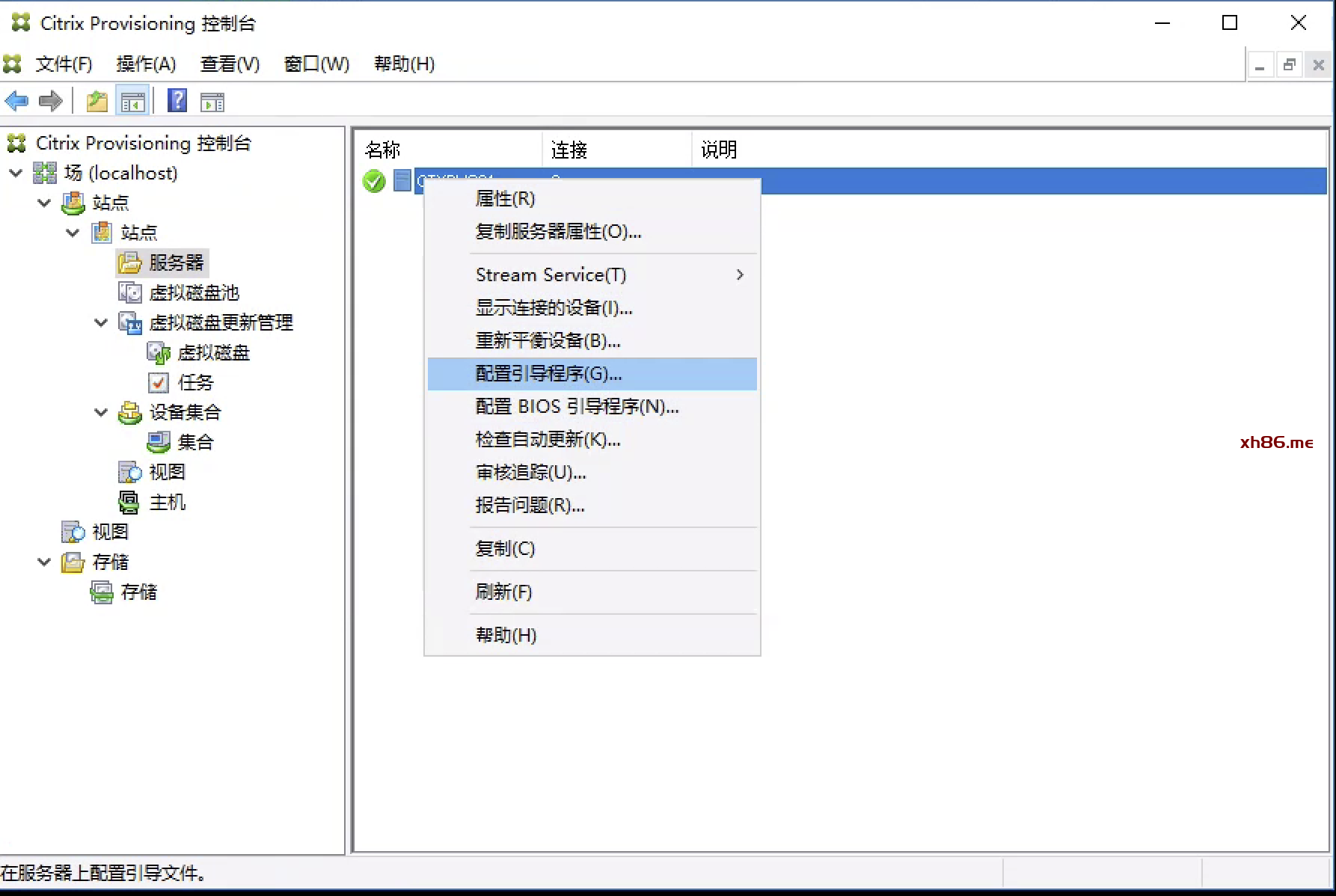右键点击场-站点-站点-服务器-CTXVPS01-配置引导程序