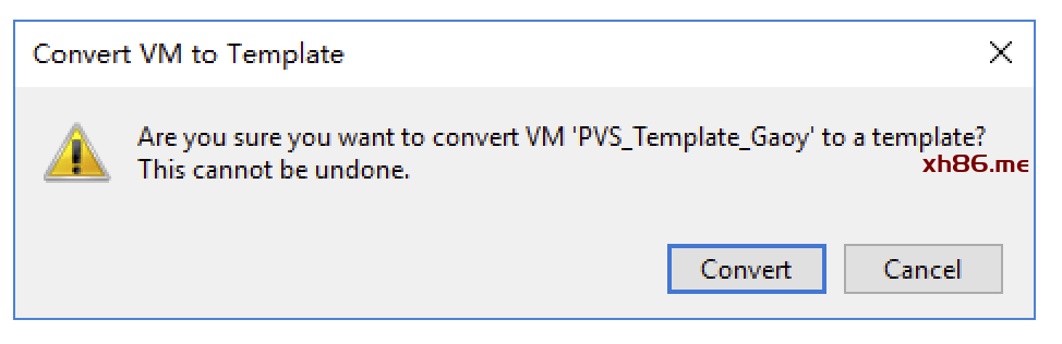 点击Convert,并更名为PVSTemplate(不建议模版名称PVS使用下划线及其他字符)