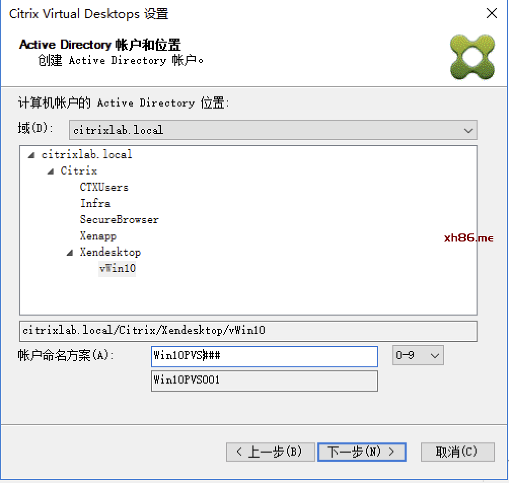 选择AD域下的相应的OU,新建的虚拟机将创建在该OU中,点击“下一步”