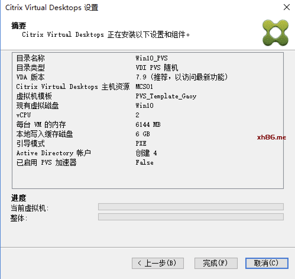 引导模式采用PXE引导 ;如需启用PVS加速器,则需要提前在XenCenter上主机完成PVS加速器的配置。