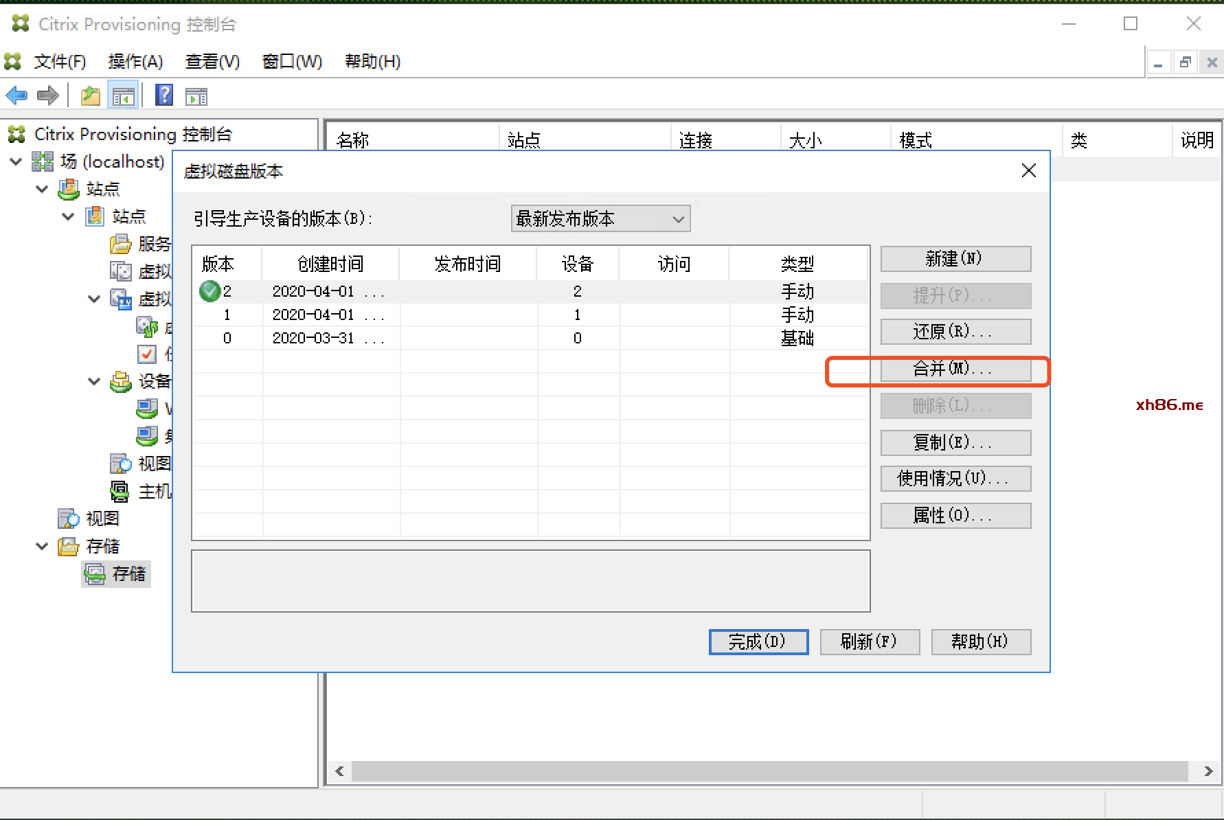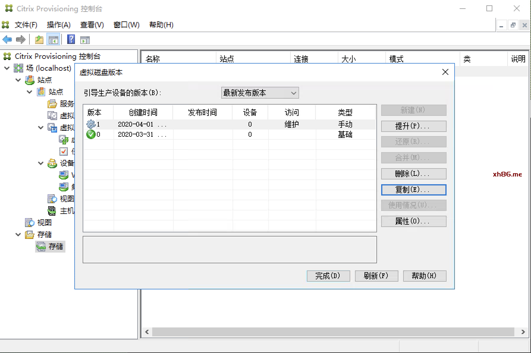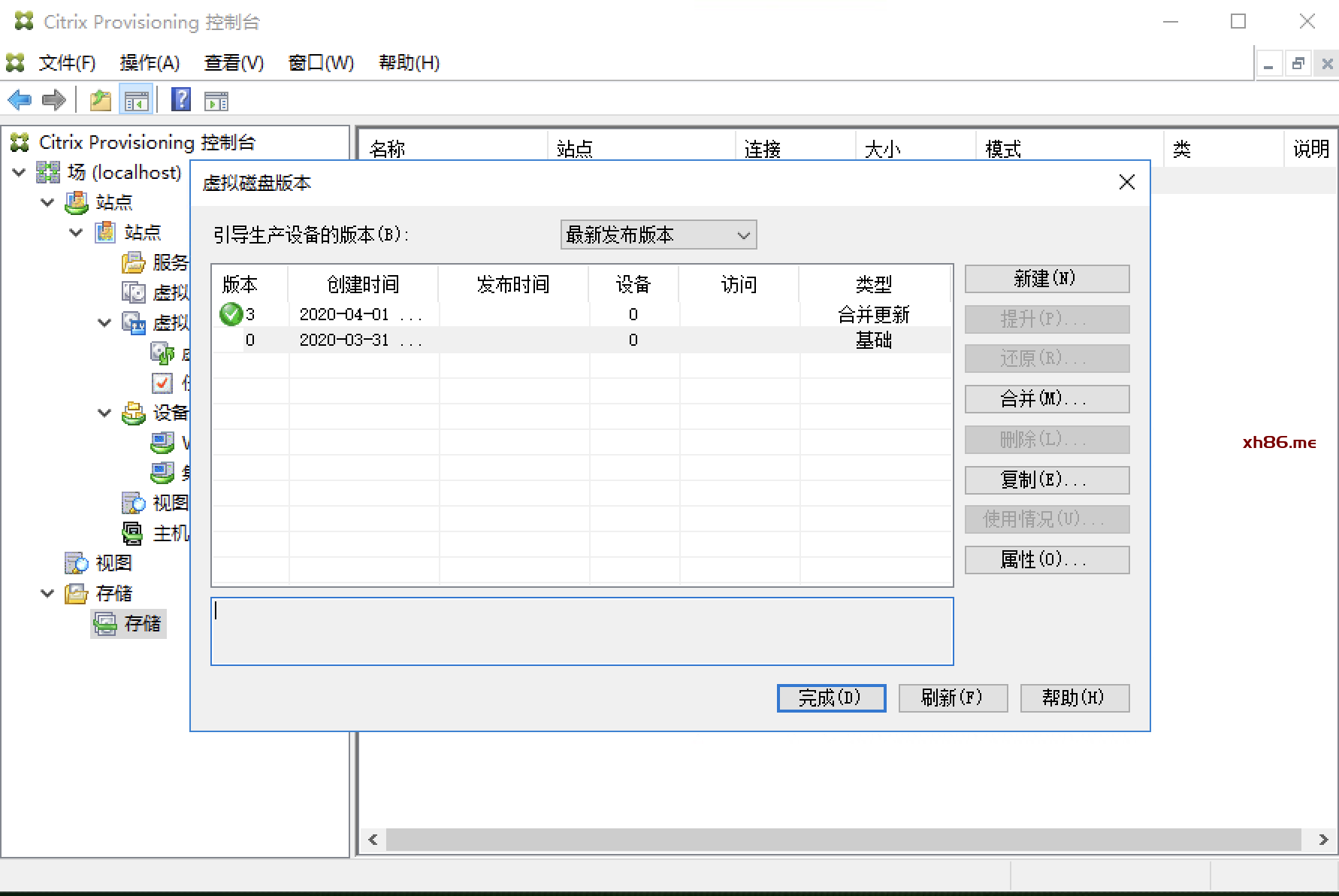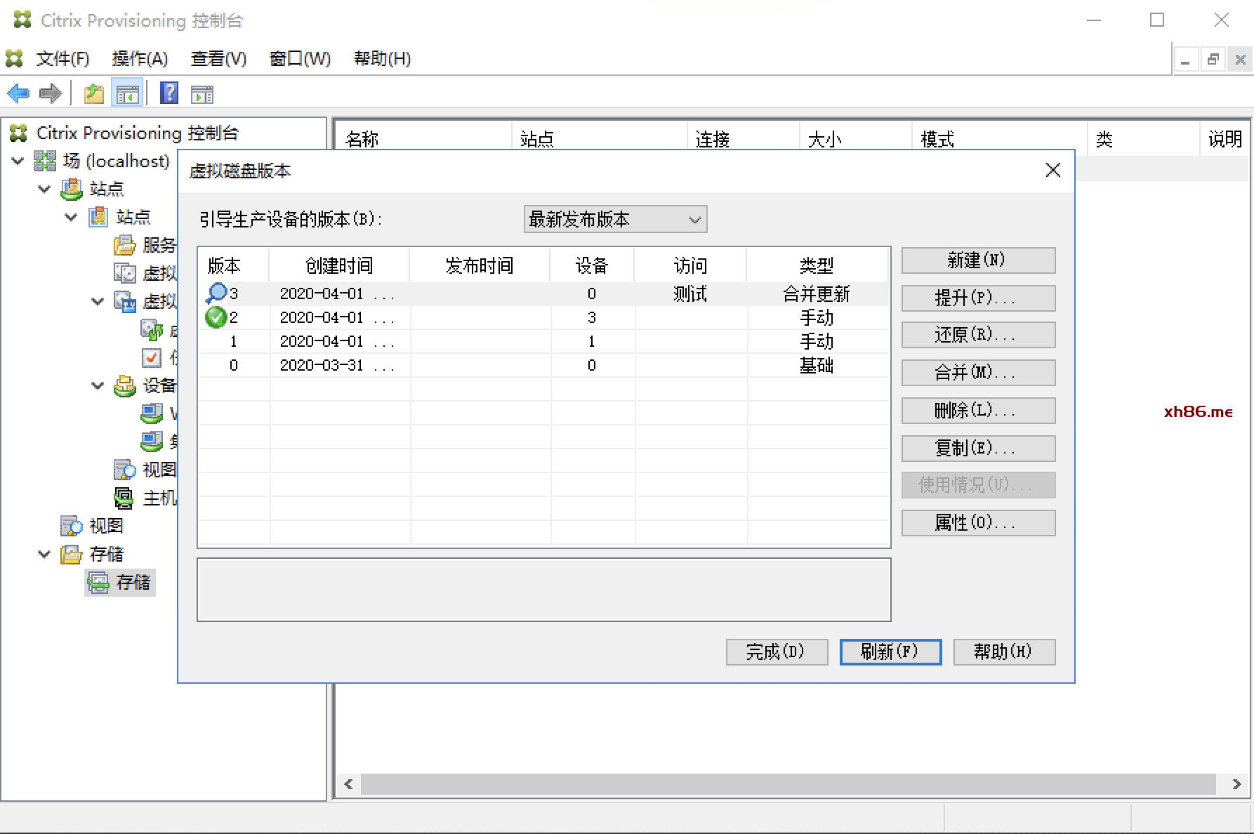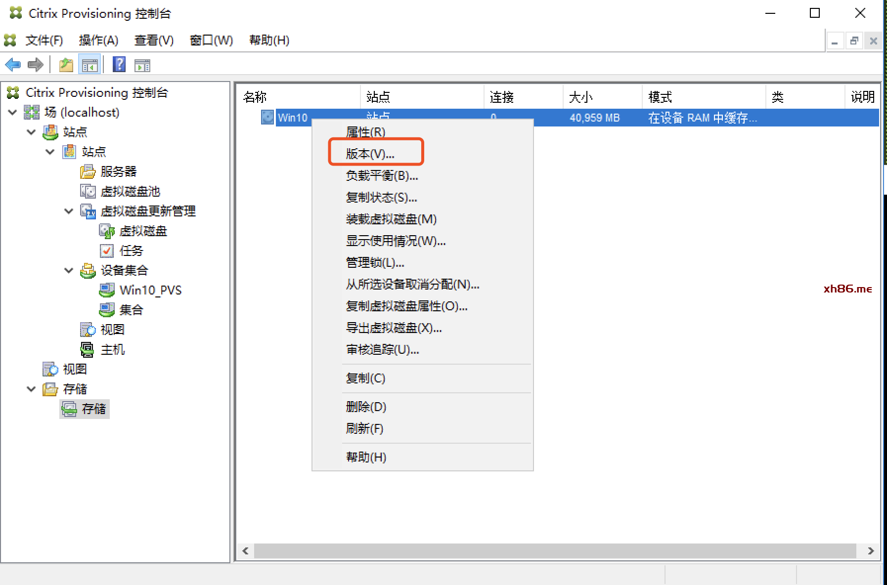 登录PVS控制台,右击虚拟磁盘,点击“版本”