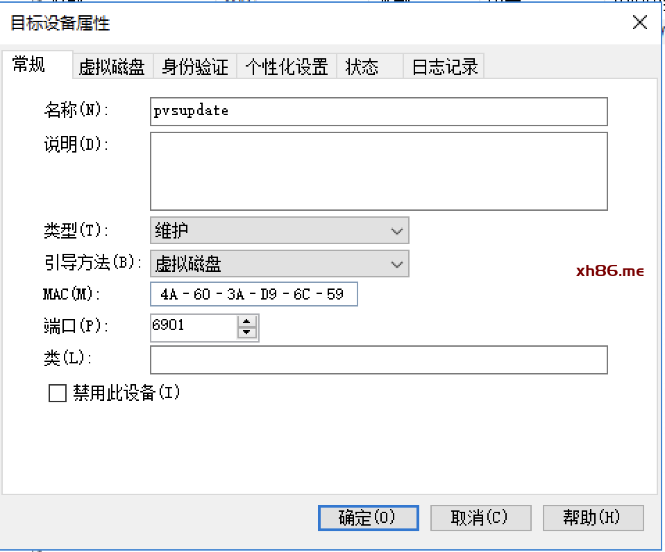 将该目标设备的“类型”设为“维护”,将用该设备启动处于维护模式的新版本虚拟磁盘。完成后点确定退出