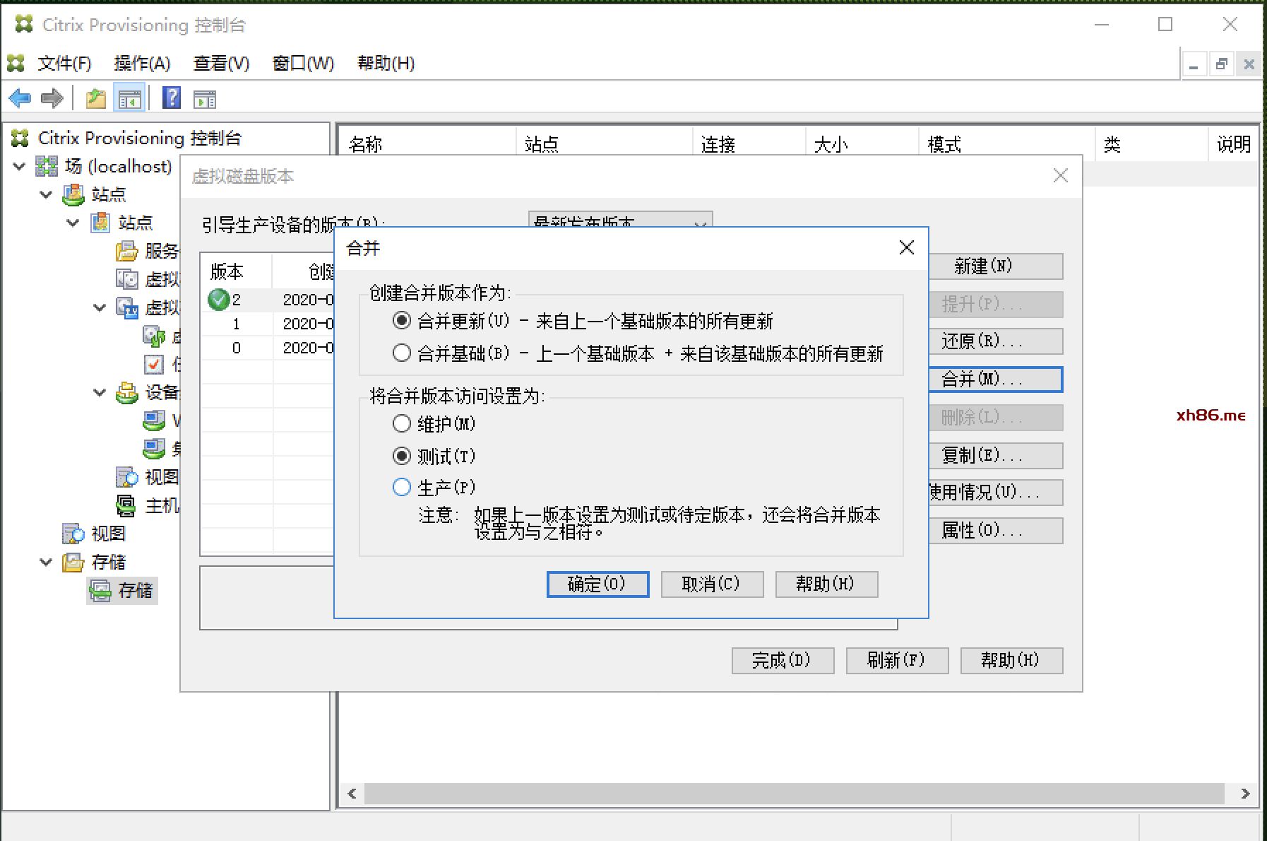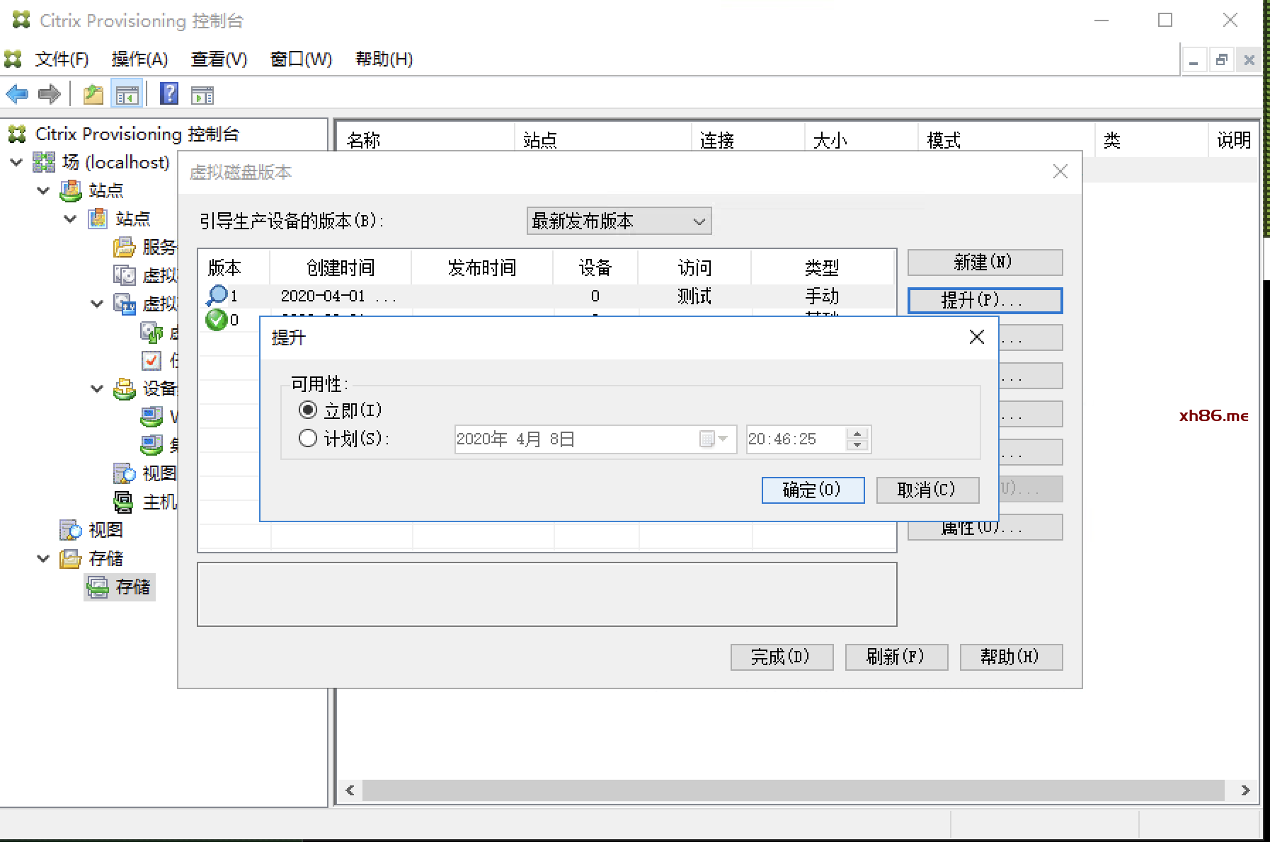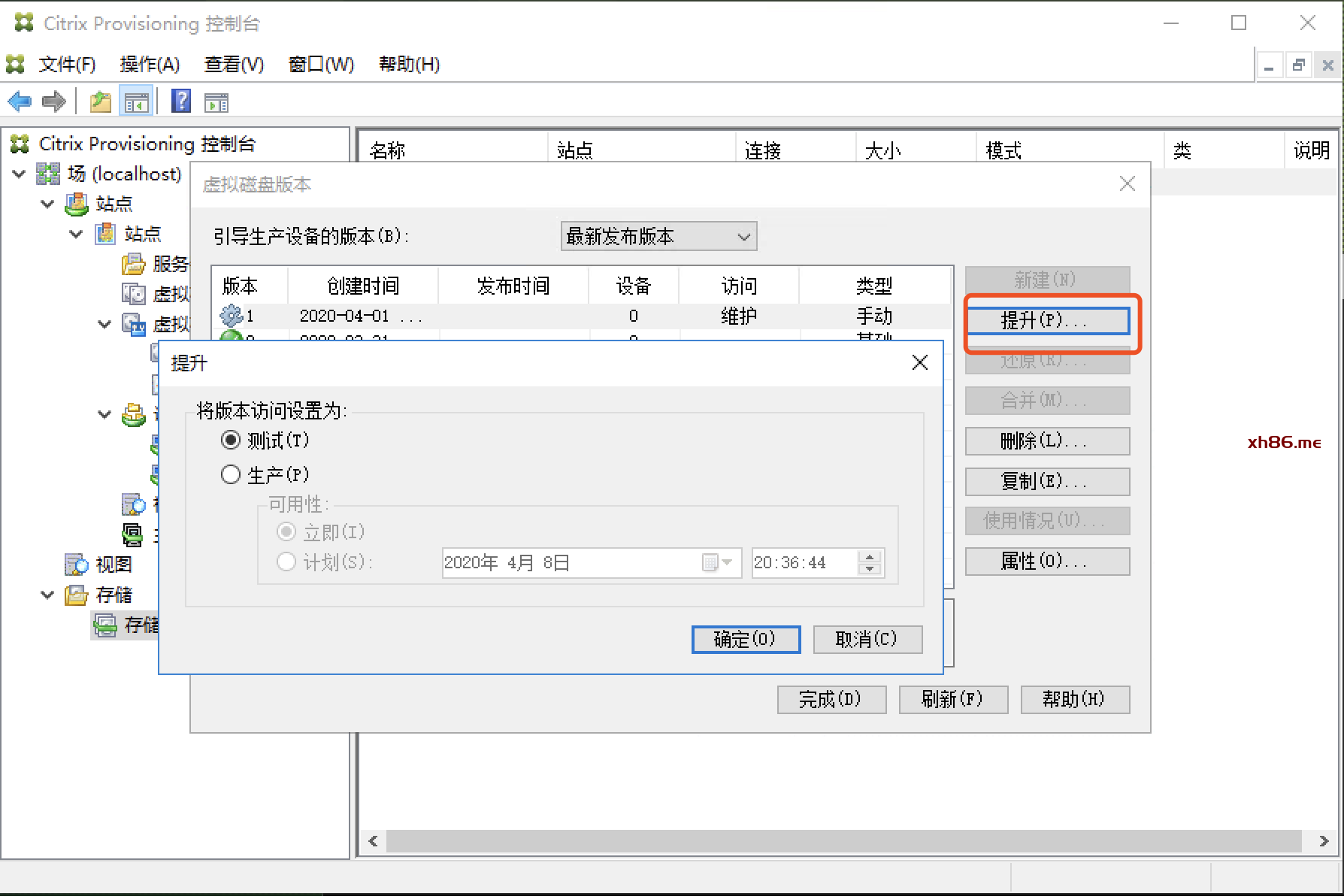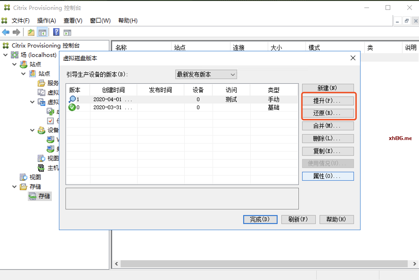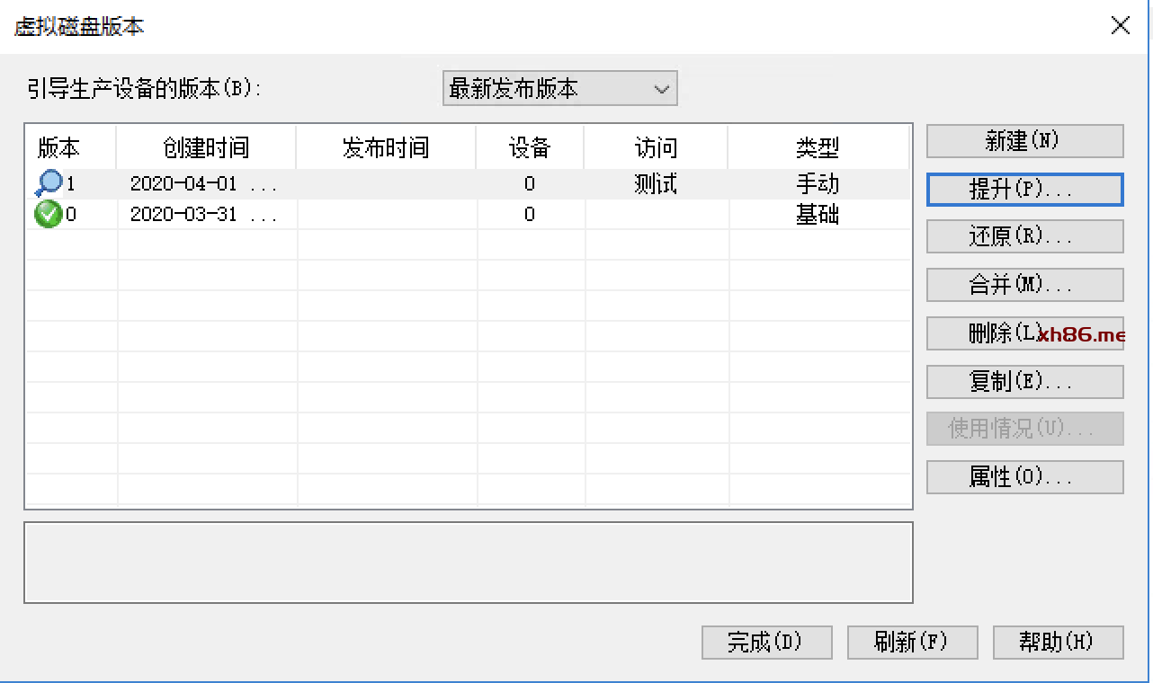 返回到虚拟磁盘版本管理界面,将对刚维护过的版本1提升到测试版本。