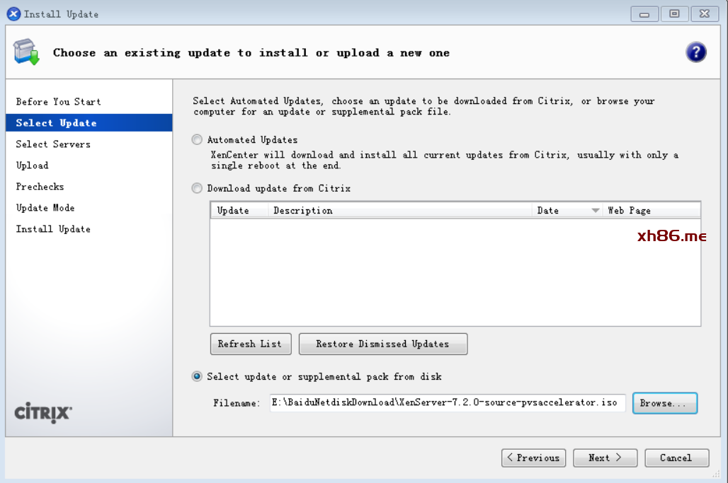 打开XenCenter,进入工具—>安装更新,选中已下载的更新包ISO文件。