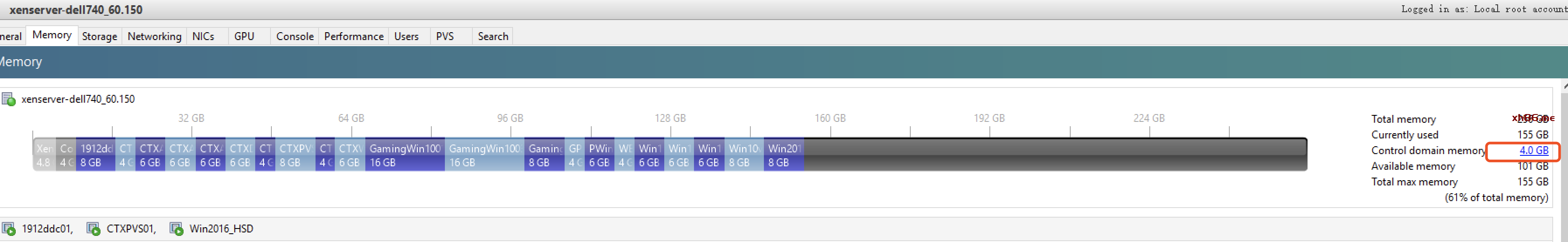 | 如果内存不够使用,可手工调整主机的Control domain memory的大小。