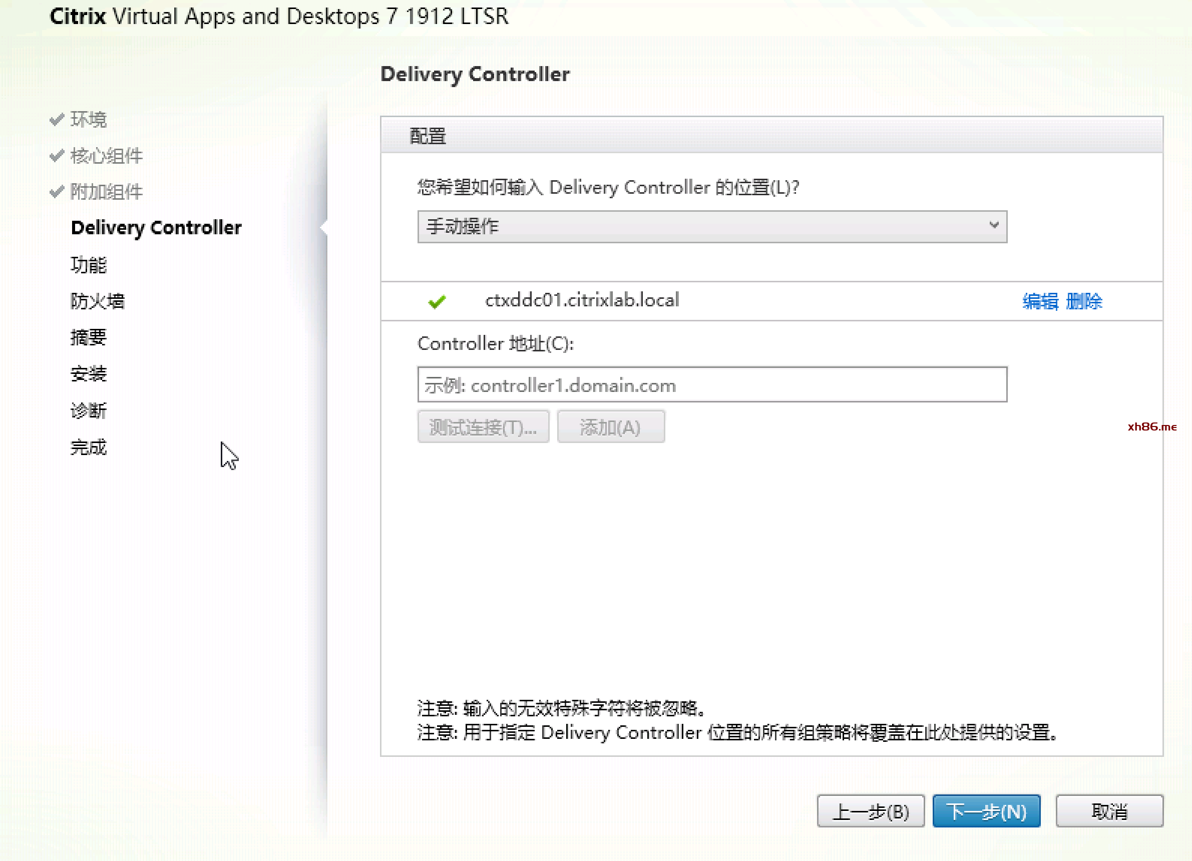 添加Delivery Controller:ctxddc01.citrixlab.local,点击“下一步”