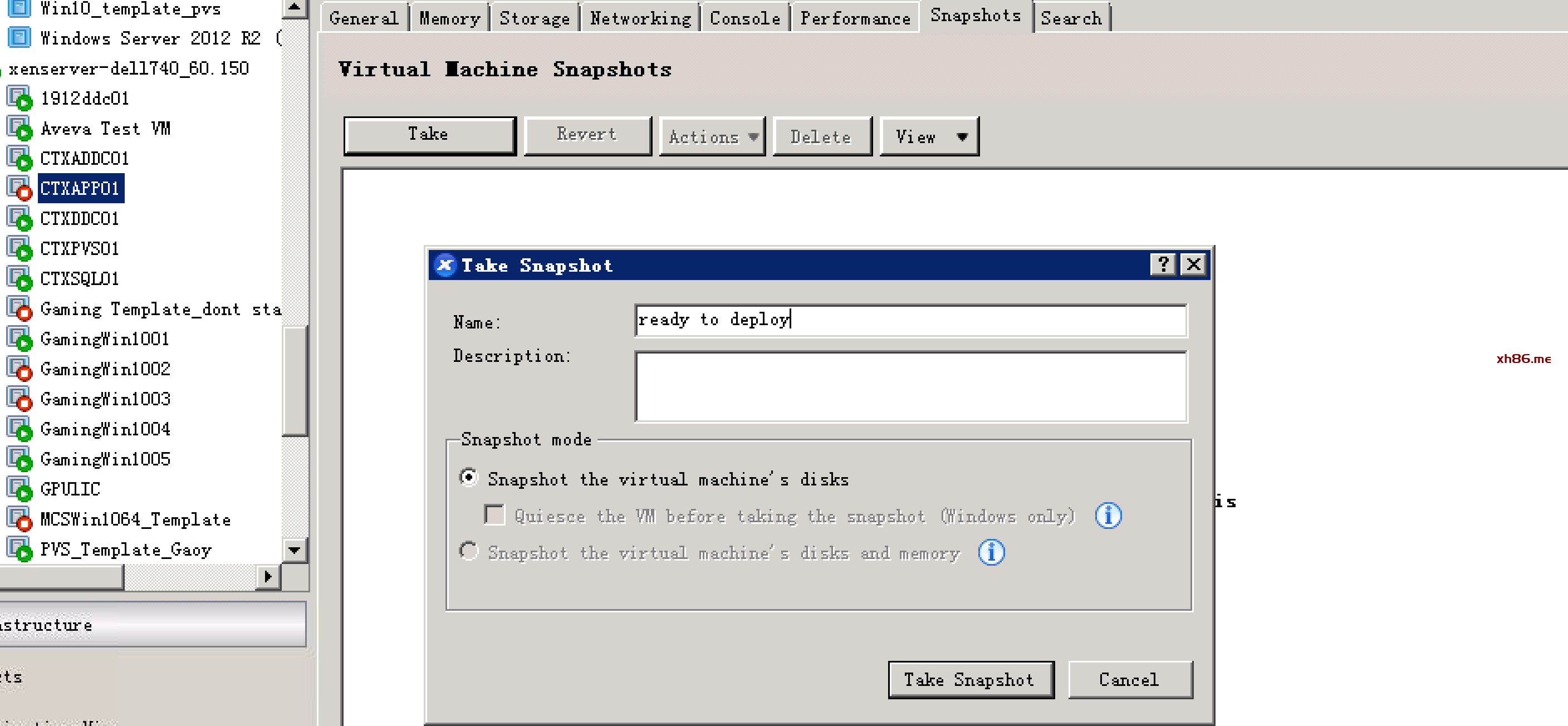 进入Xenserver Console,把CTXAPP01虚机关机,然后创建快照