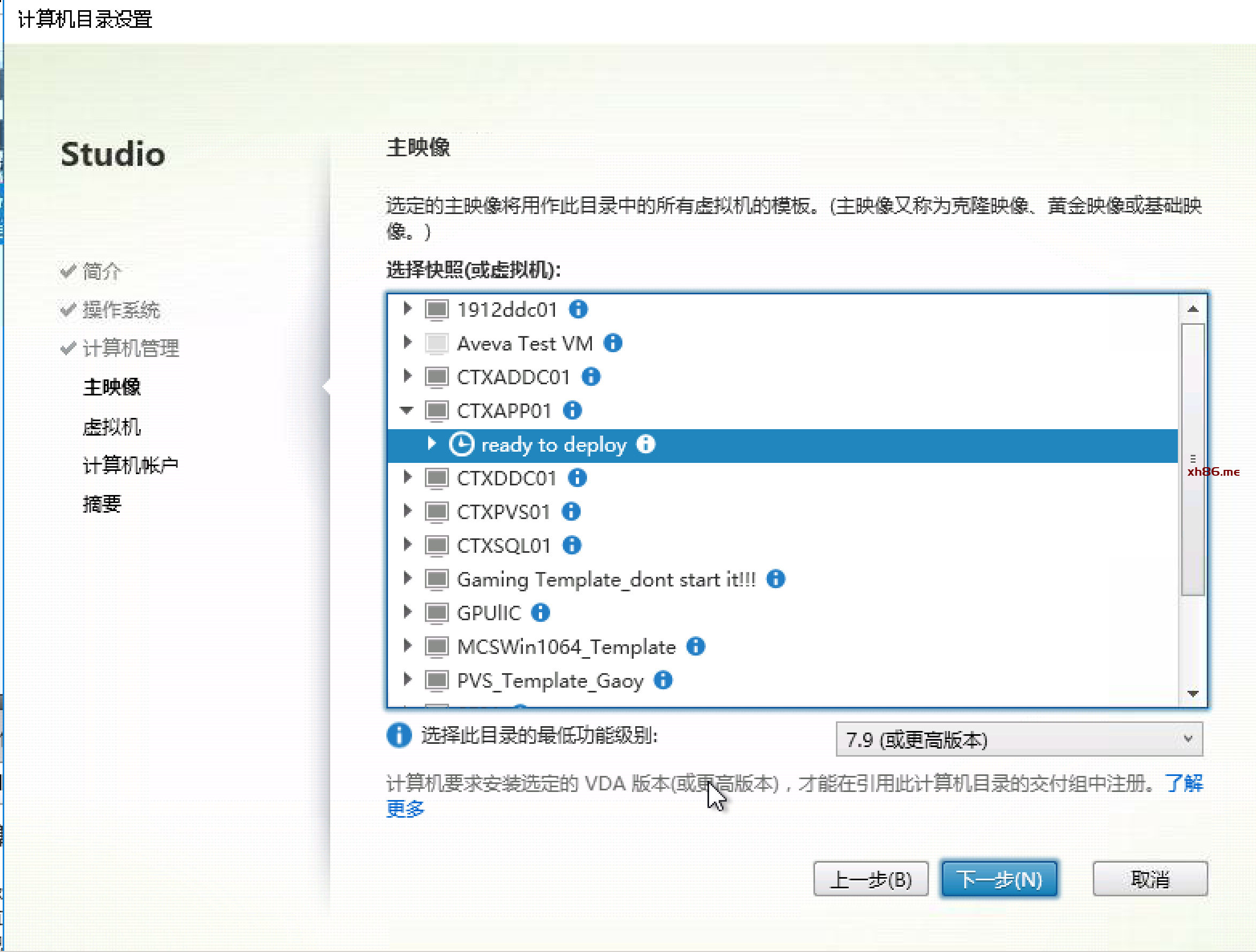 选择之前安装的CTXAPP01虚拟机的ready to deploy快照,点击“下一步”