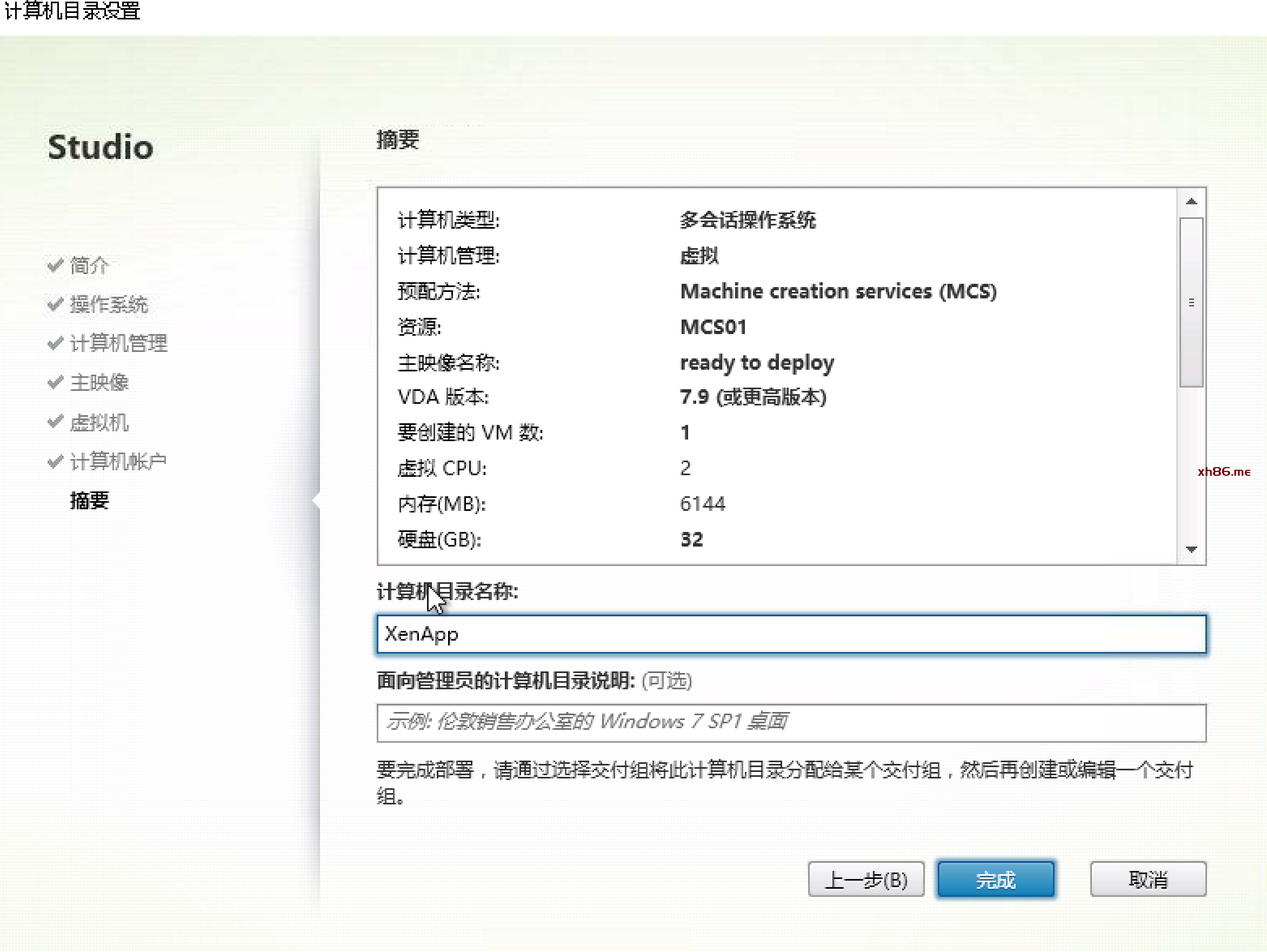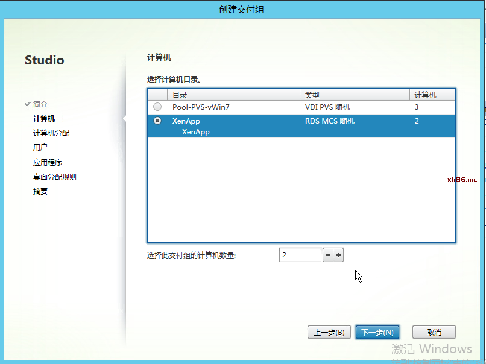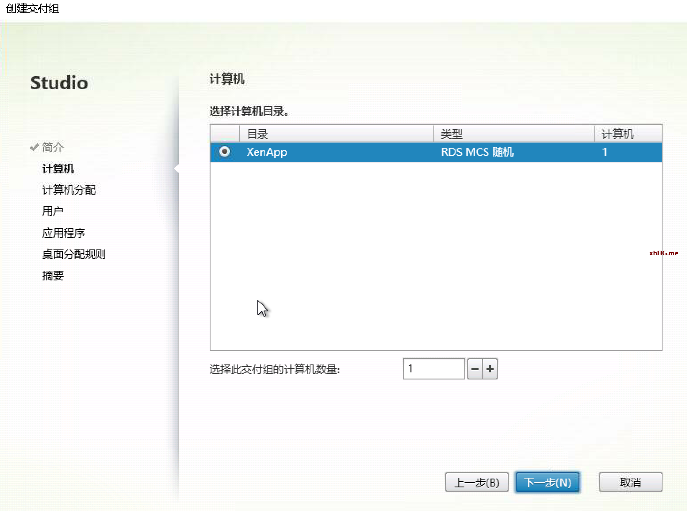 选择目录:XenApp,计算机数量:1,点击“下一步”