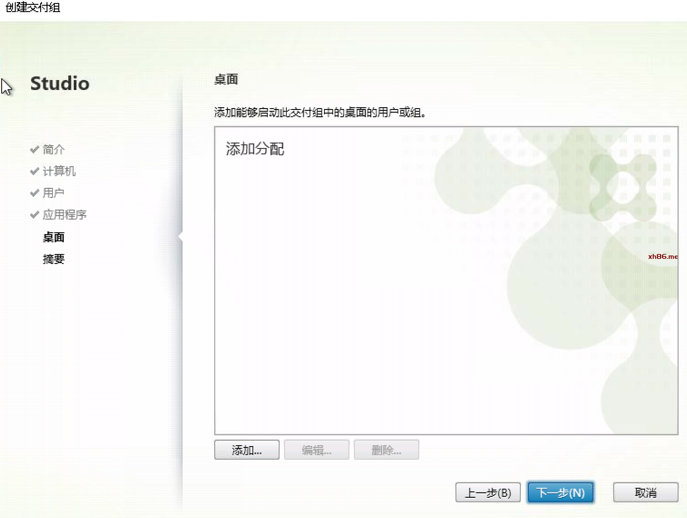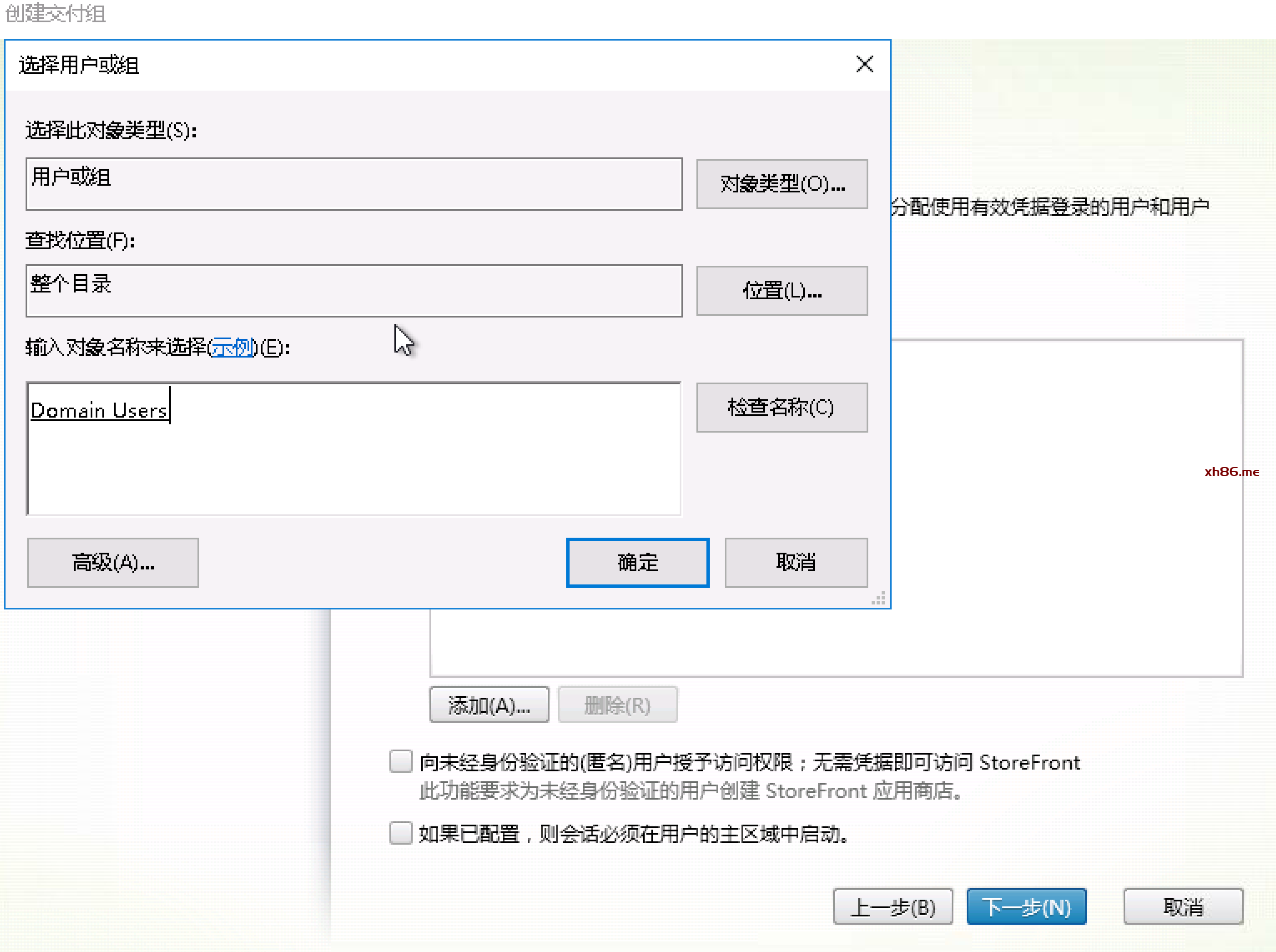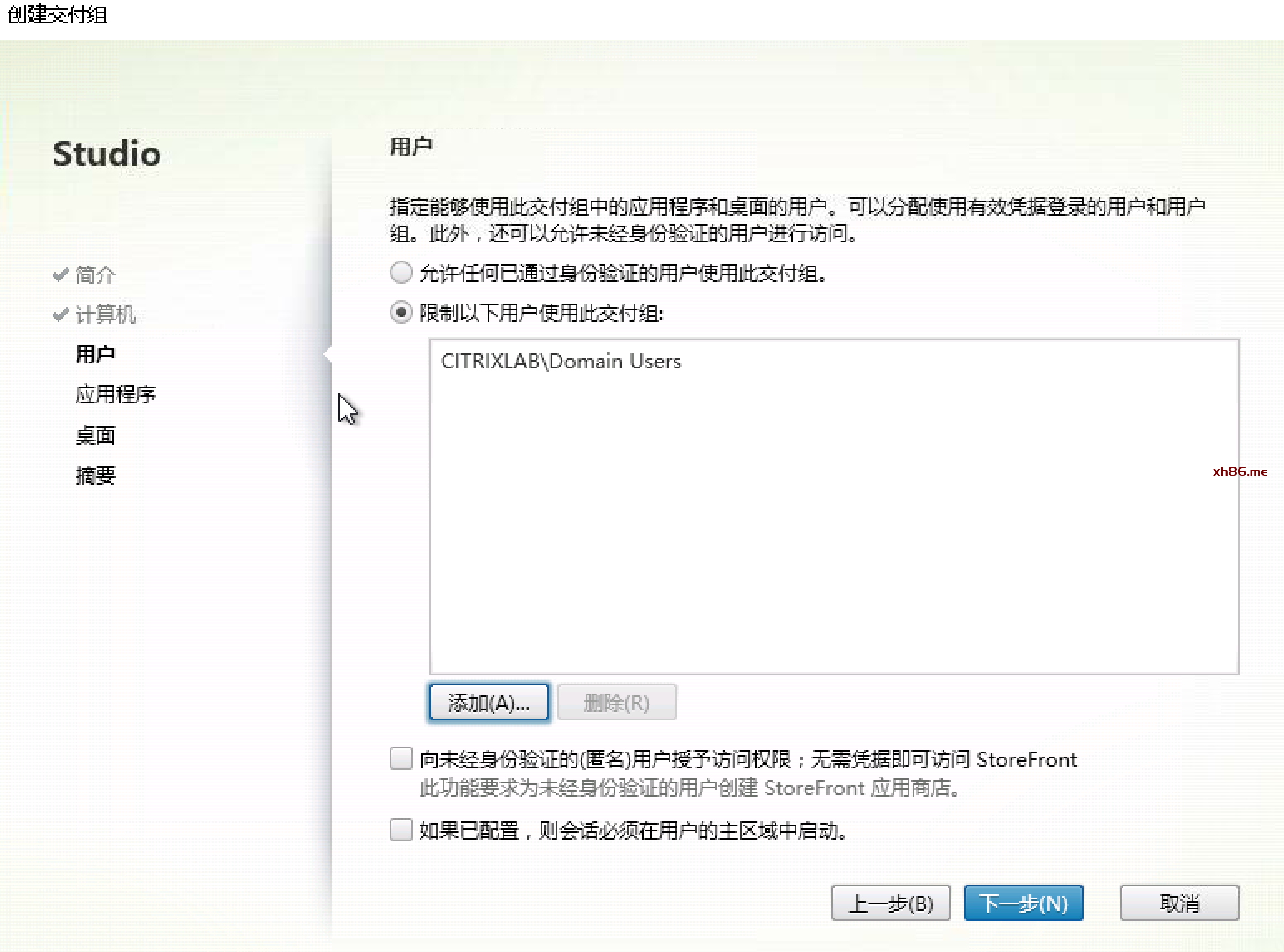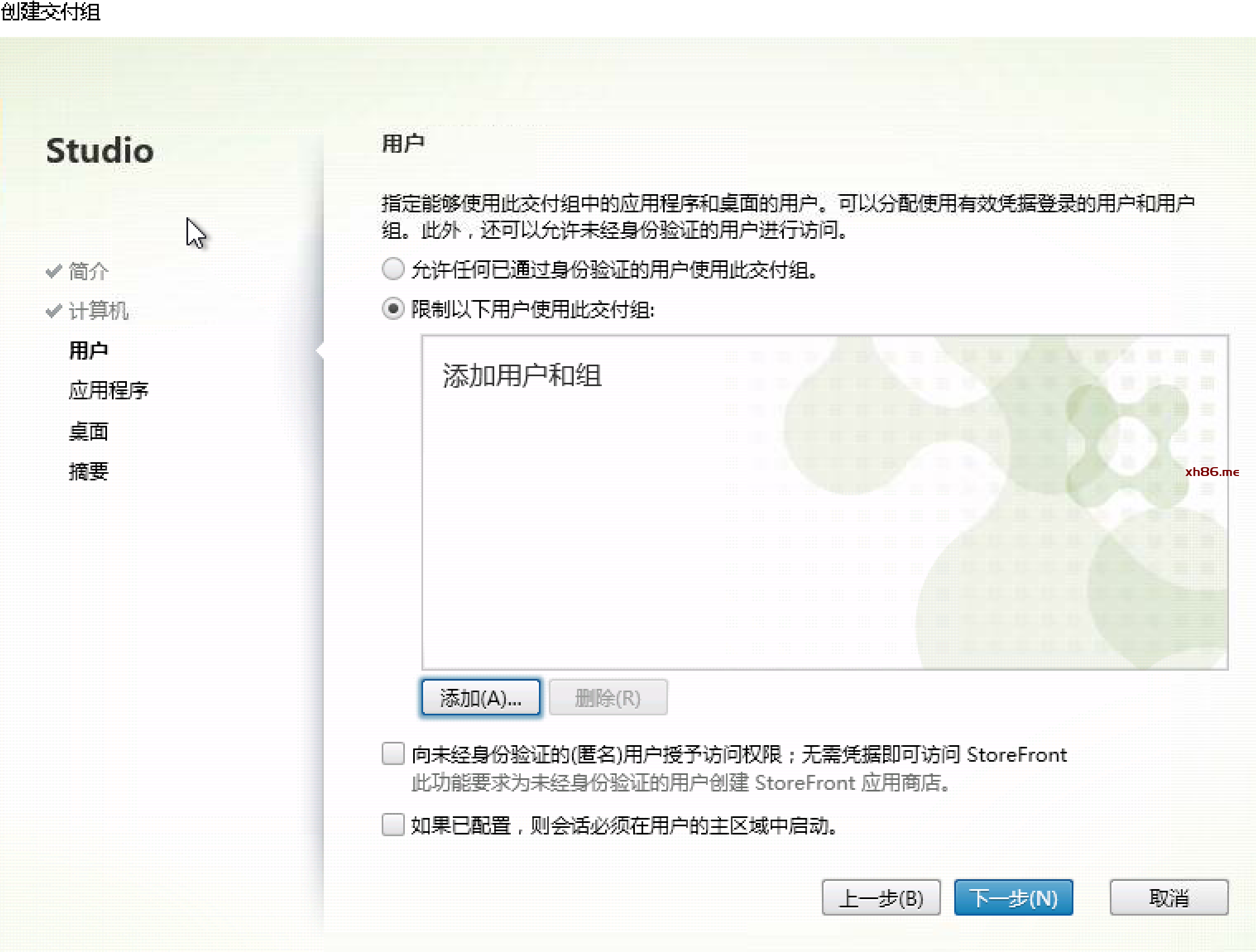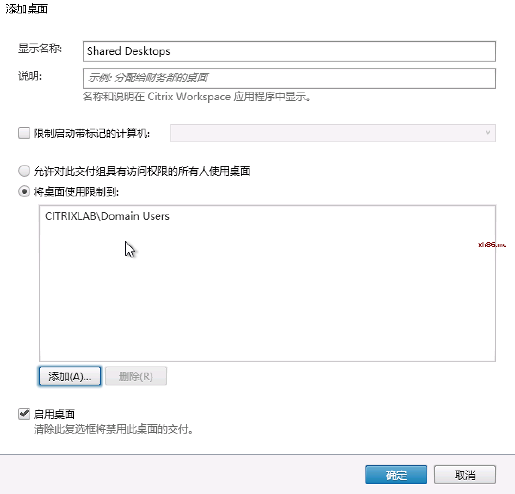 若要发布共享桌面(可选),点击“添加”,授予用户访问权限