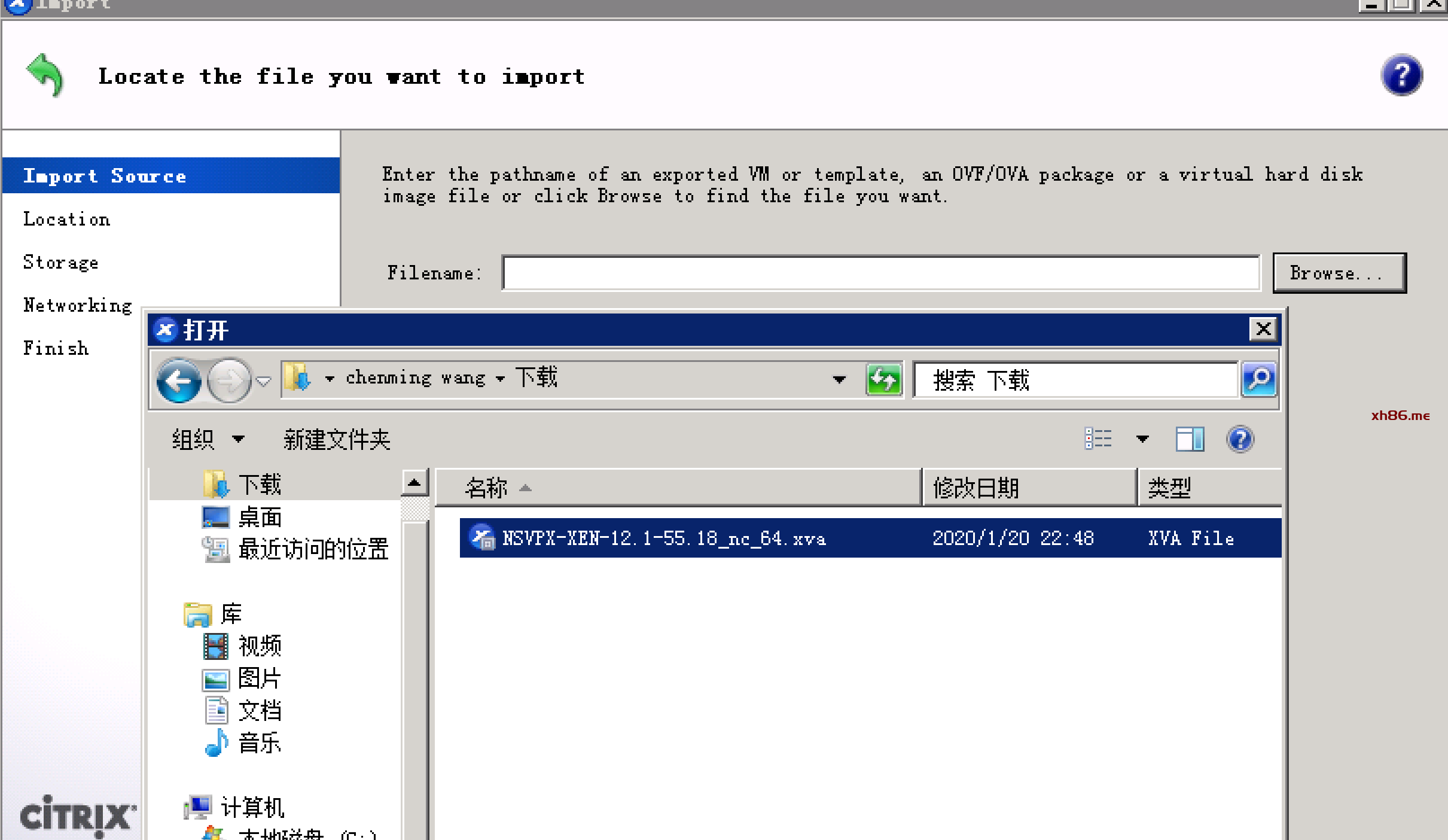 本次实验采用Citrix ADC VPX,首先从Citrix官网下载ADC所对应的VPX,然后导入Citrix Hypervisior