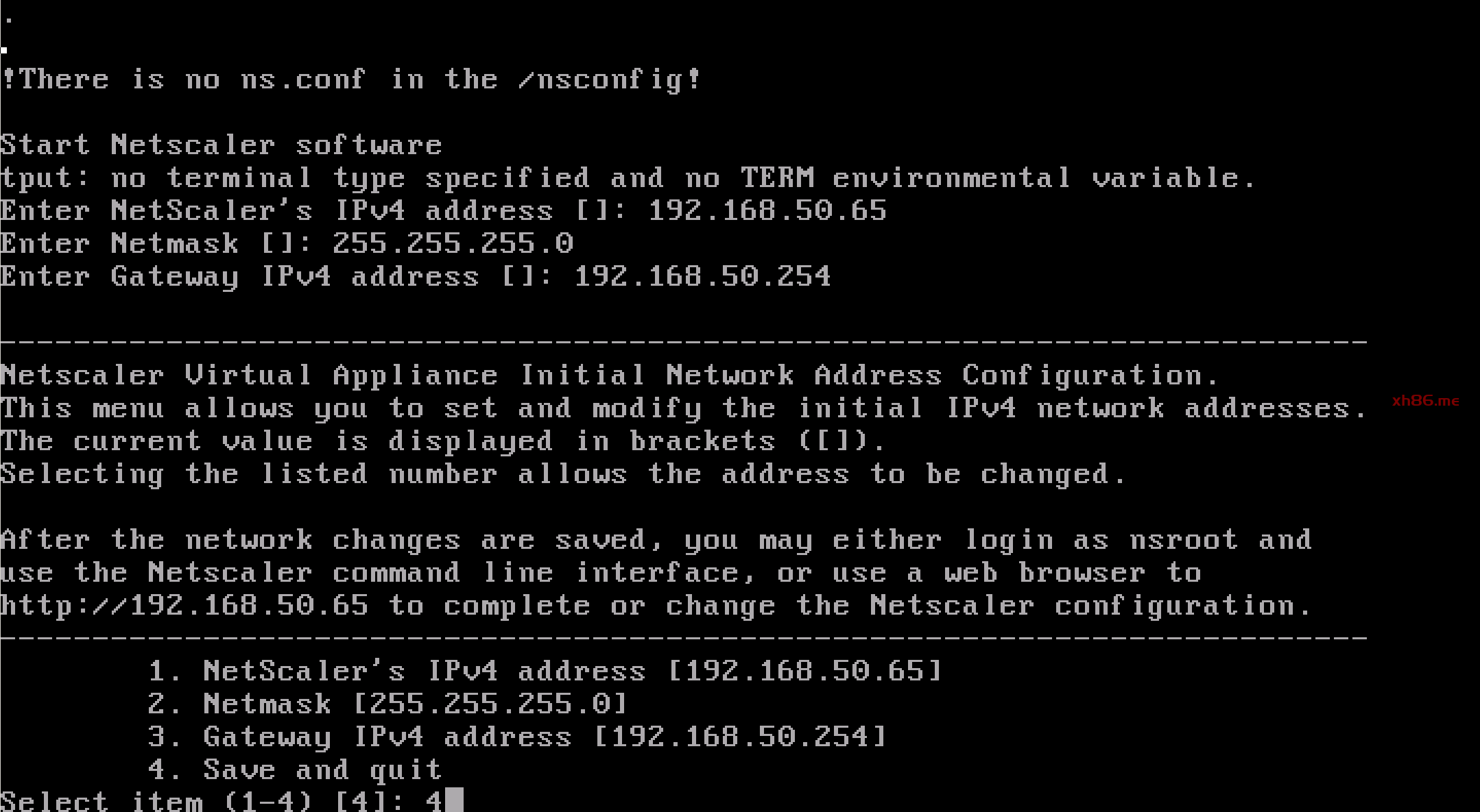 | 在Console界面中输入VPX IP (管理IP),子网,掩码信息