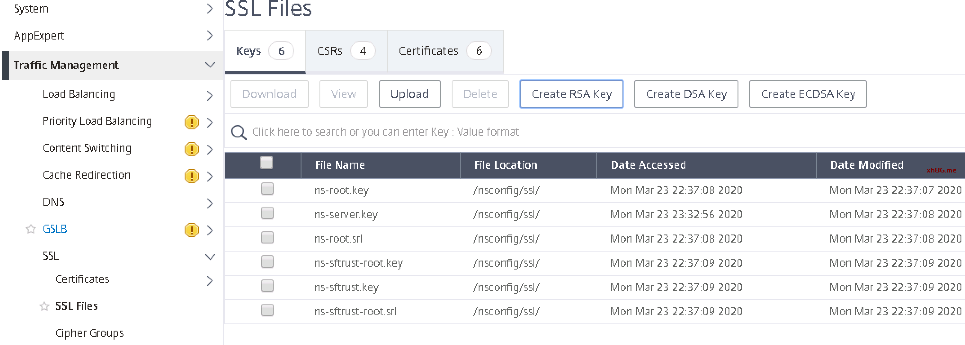 浏览到Traffic Management—SSL—SSL Files,点击Create RSA Key。