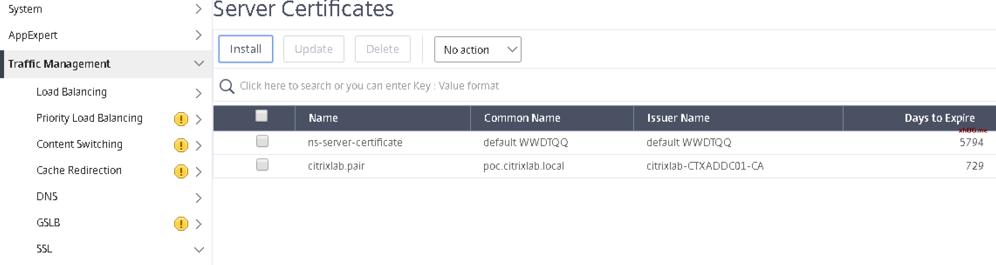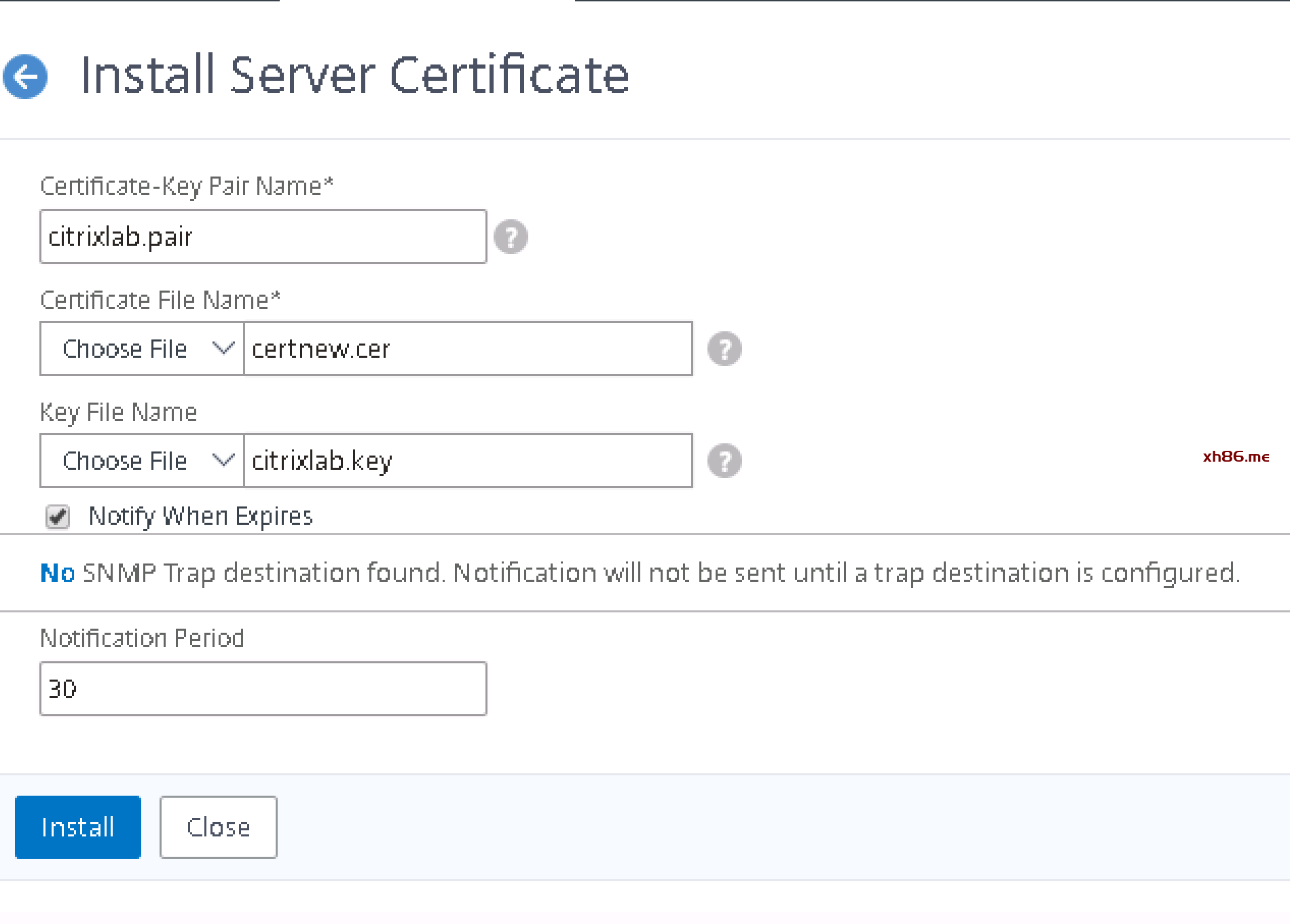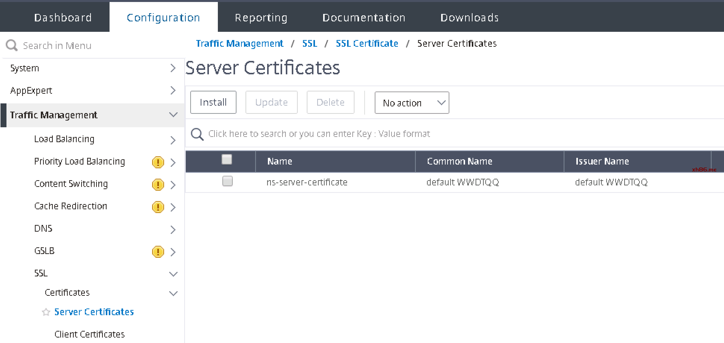 浏览到Traffic management—SSL—Certificates—Server Certificate,点击install。