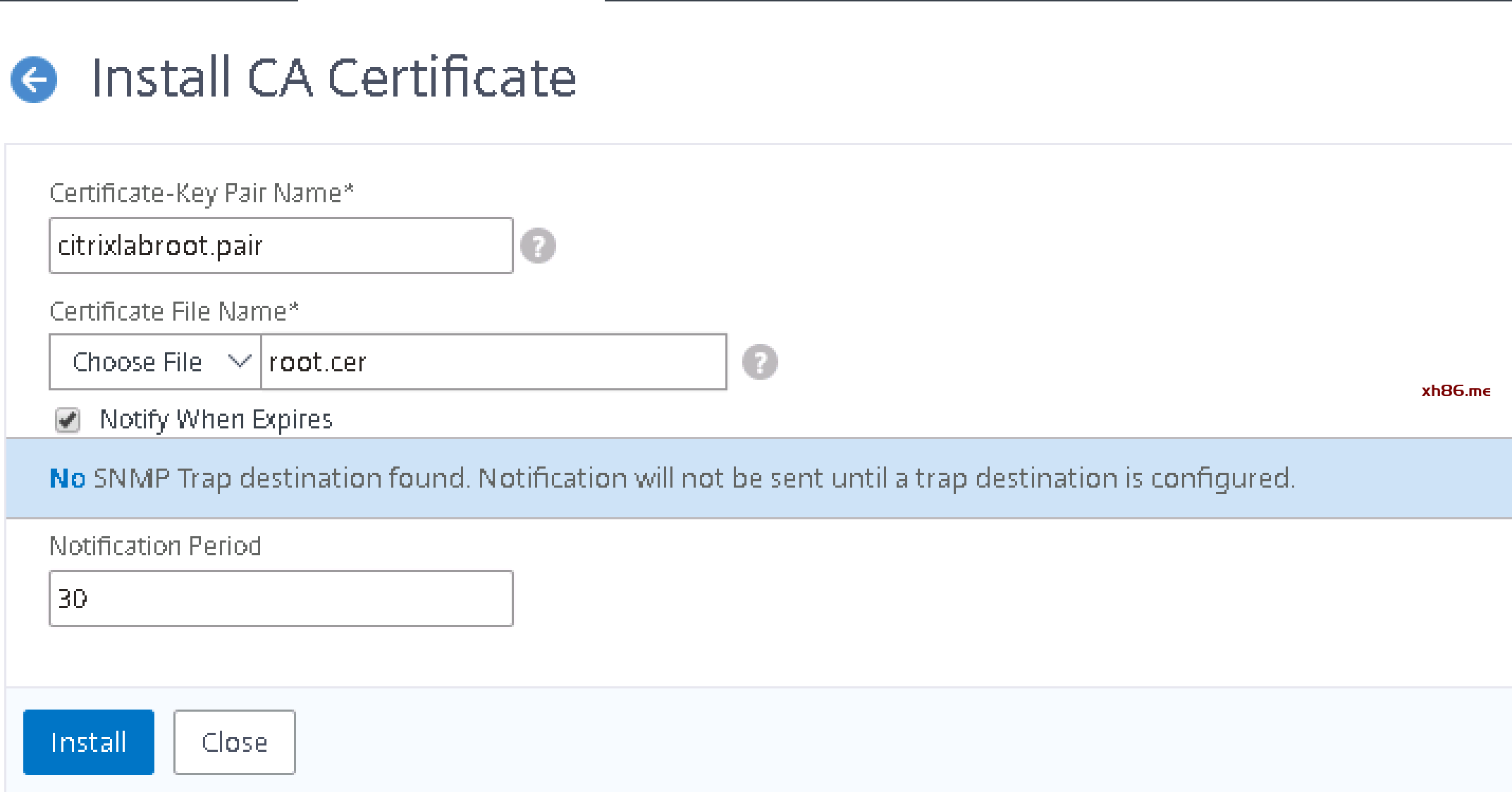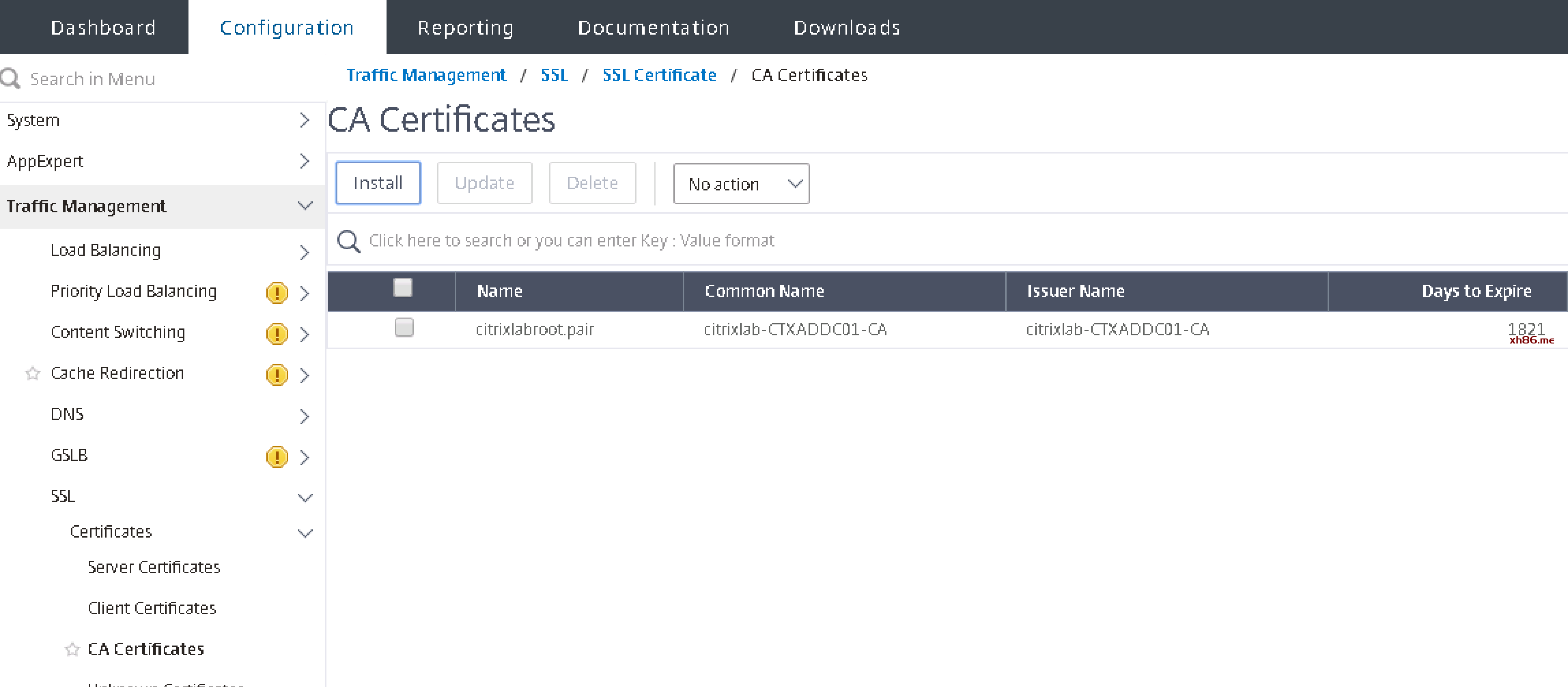 浏览到Traffic Management—SSL—Certificates—CA Certificates,点击install。