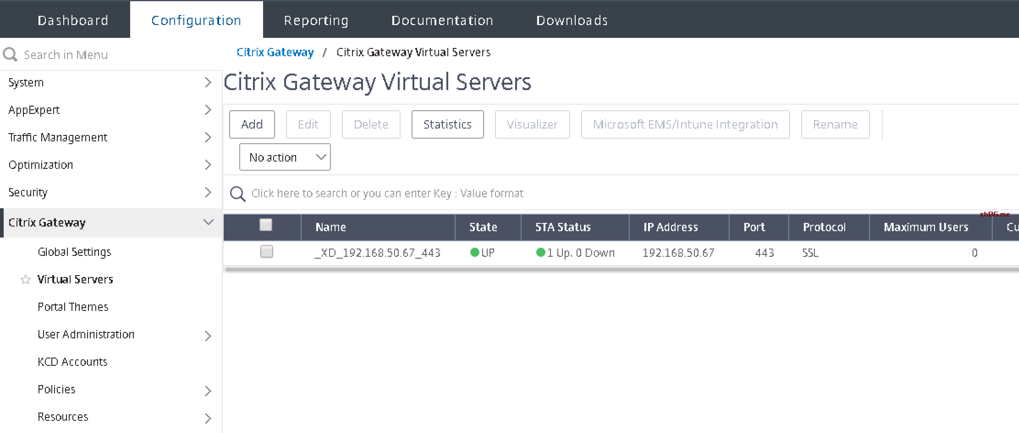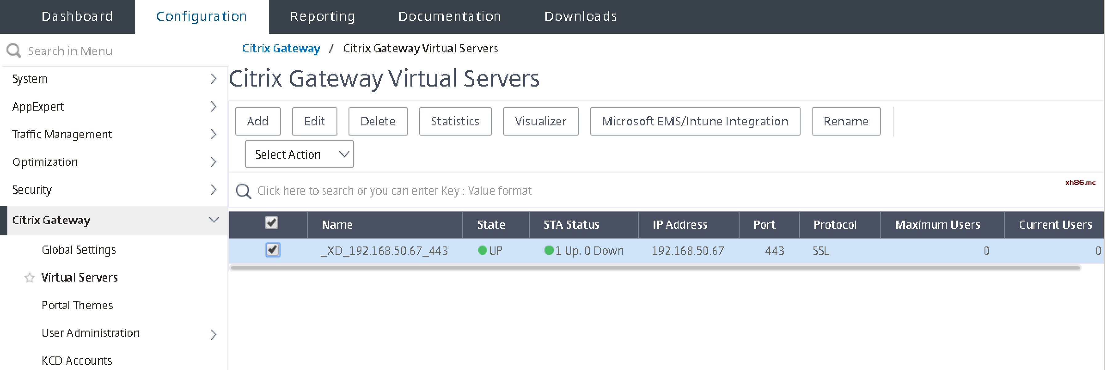 回到 Configuration – Citrix Gateway – Virtual Srevers,可以看到Netscaler Gateway Virtual Server已建立