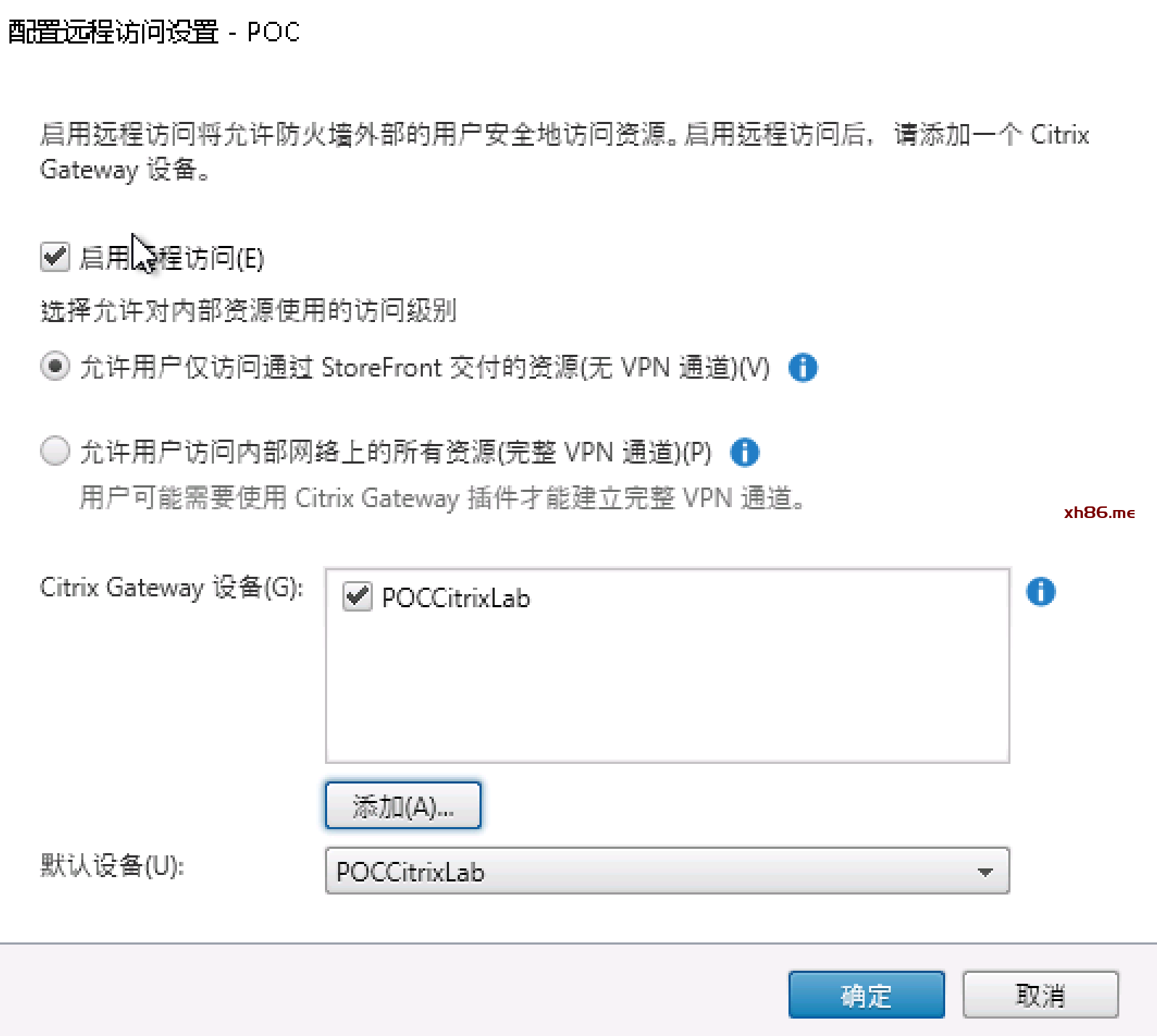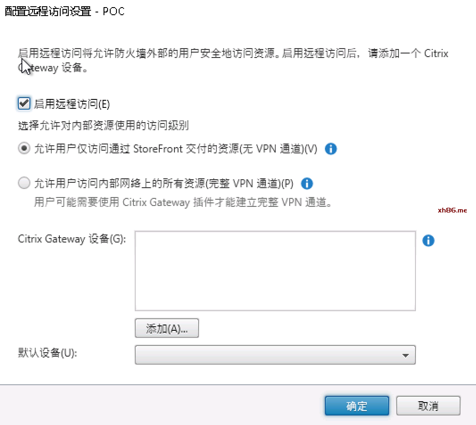 | 勾选‘启用远程访问’- ‘允许用户仅访问通过StoreFront交付的资源(无VPN通道)’
