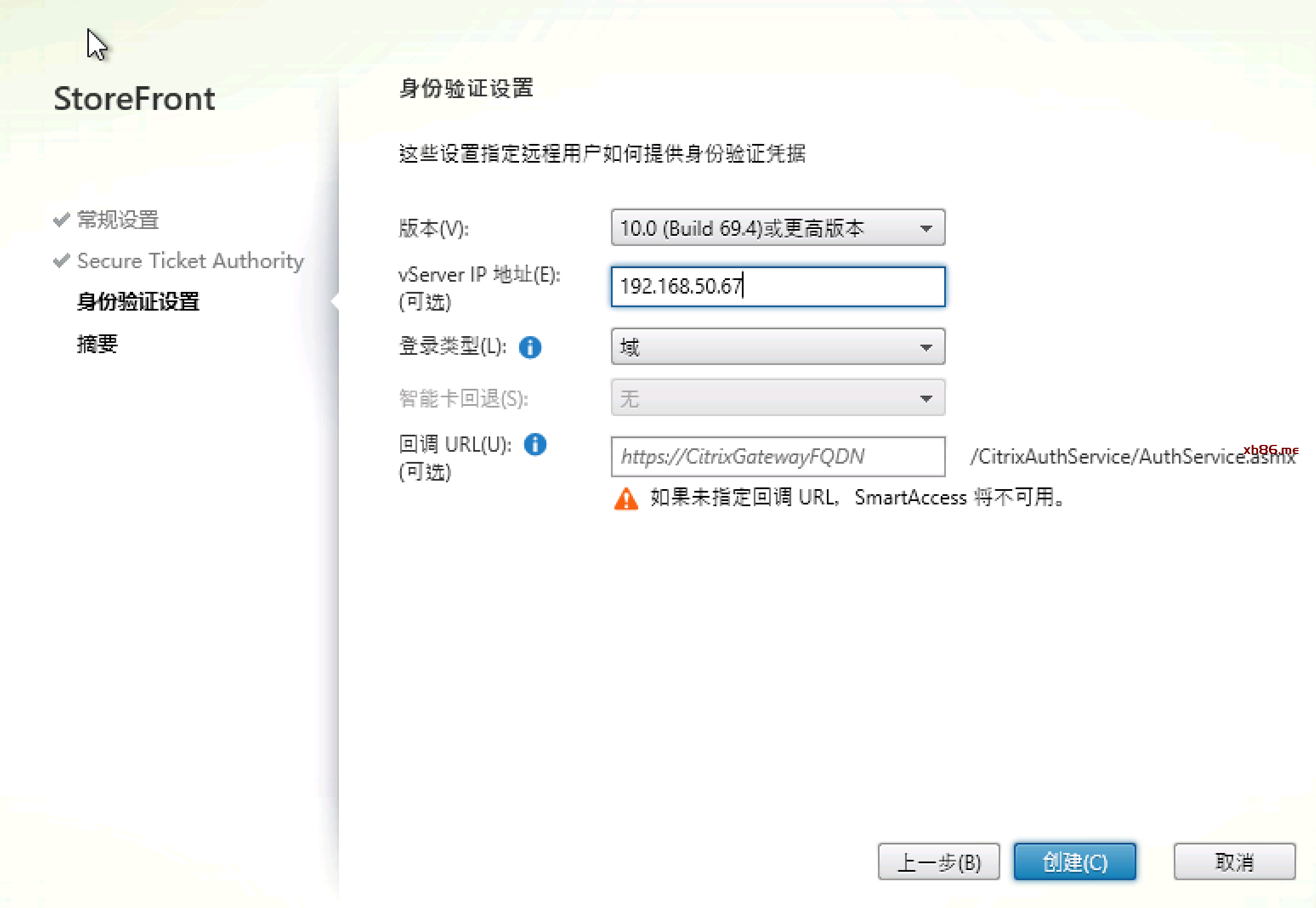 输入vServer IP (Netscaler Gateway的Virtual IP),点击创建