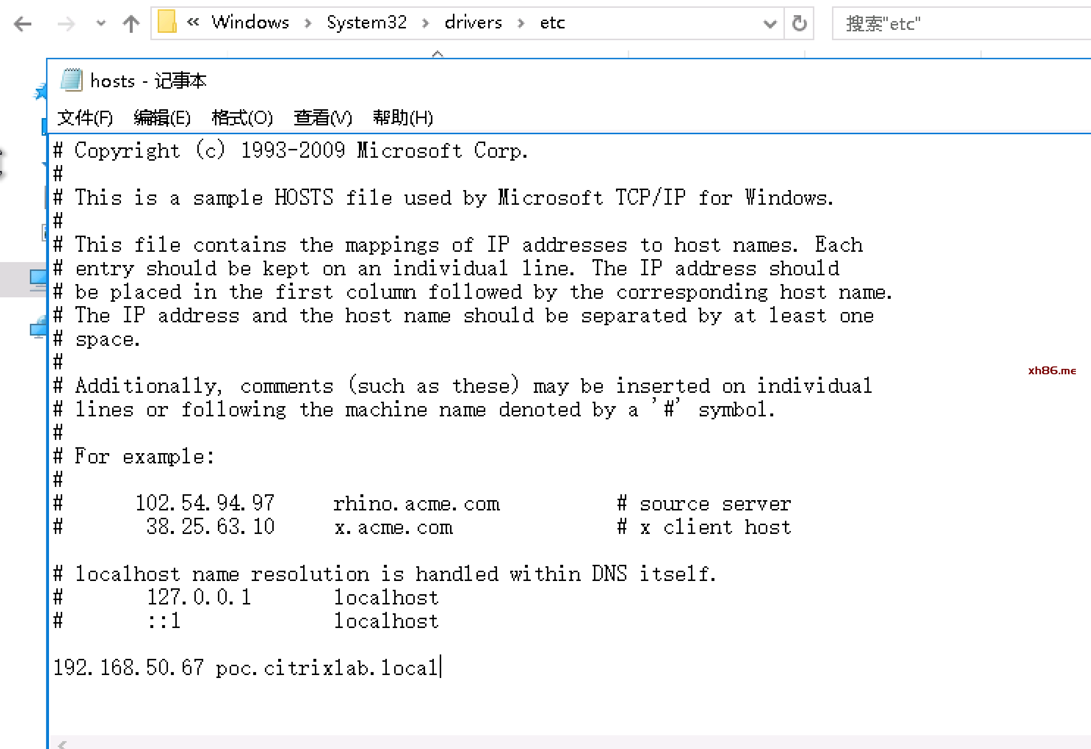 | 在服务器本地HOSTS文件中加一条Netscaler AG 的记录