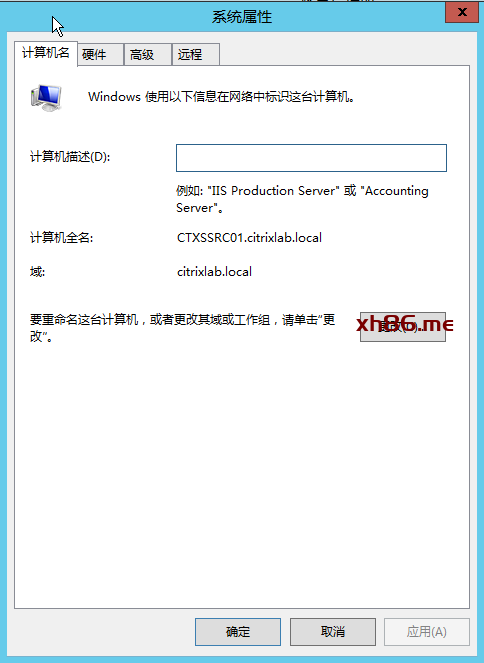 本例中,通过前序Win2K12R2模板,创建新主机并命名为CTXSSRC01,并加域 ![]() |