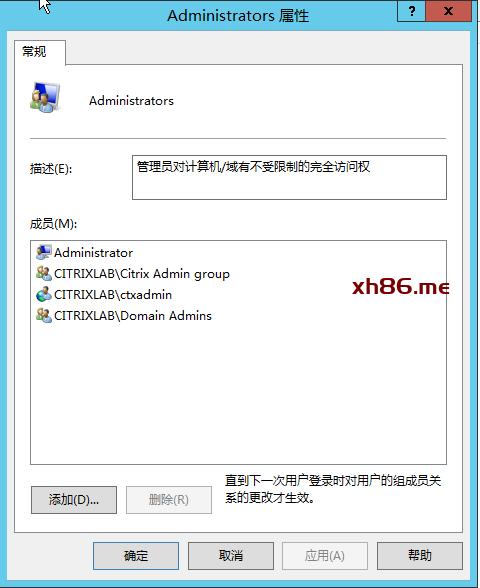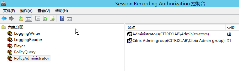选择PolicyAdministrator,添加允许修改策略的管理员及组成员。本例中添加:Citrix Admin group。