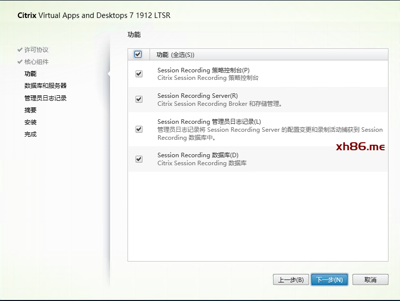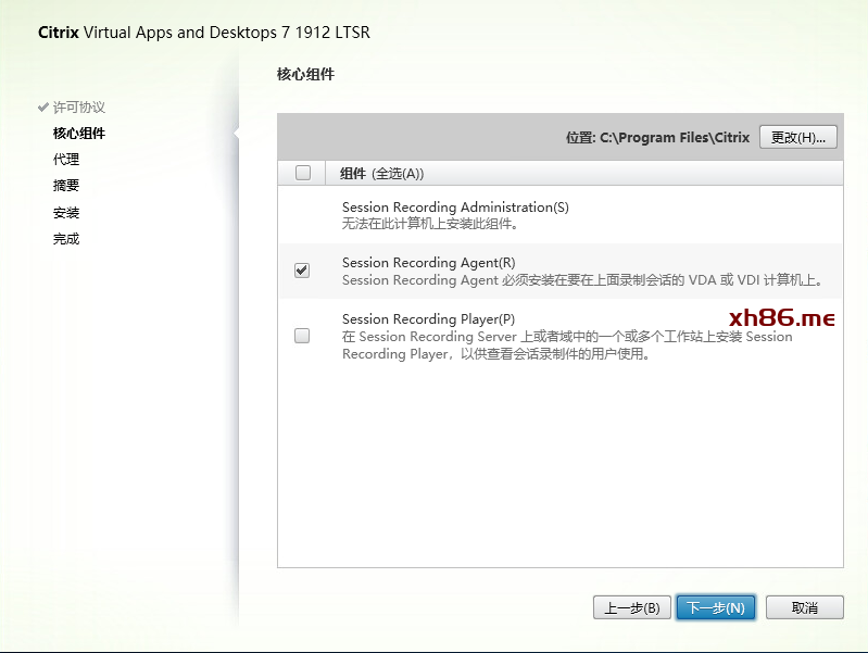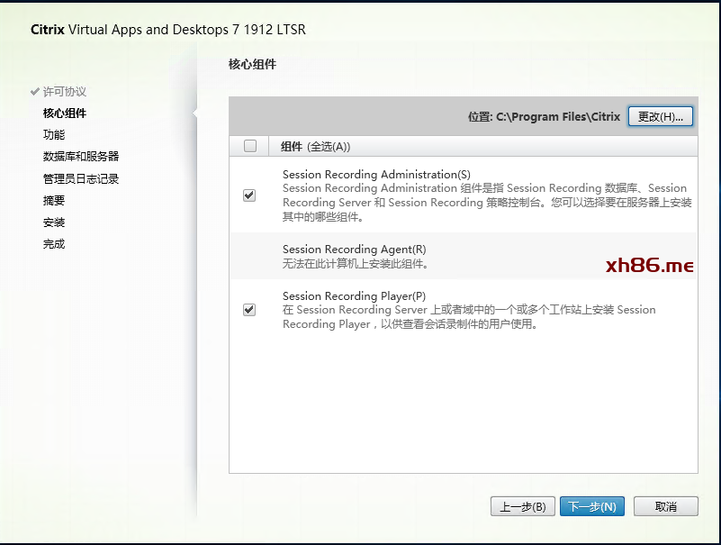 选择Session Recording Administration和Session Recording Player。Player可以安装在其他机器上。