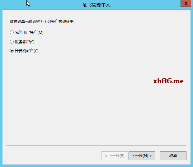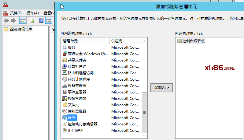 运行MMC,并添加“证书”类型,