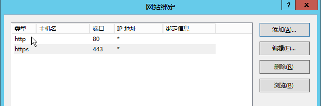 在默认站点上点右键——绑定,添加https绑定,并选择SSL证书,这个Web证书申请请参考CA证书申请,这里不在探讨