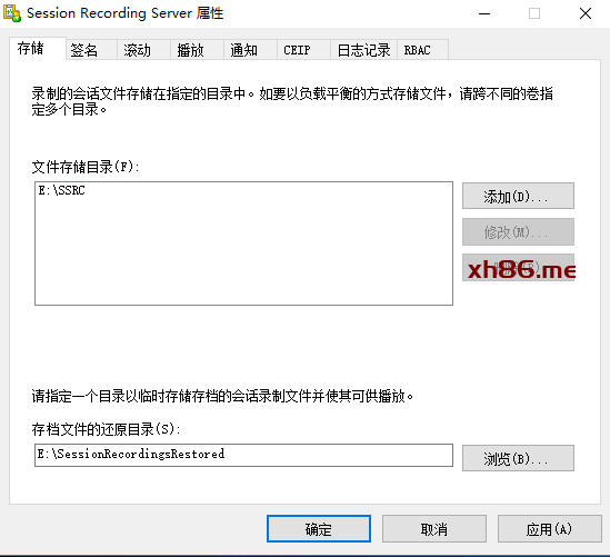 打开Session Recording Server控制台,设定“文件存储目录”和“存储文件的还原目录”