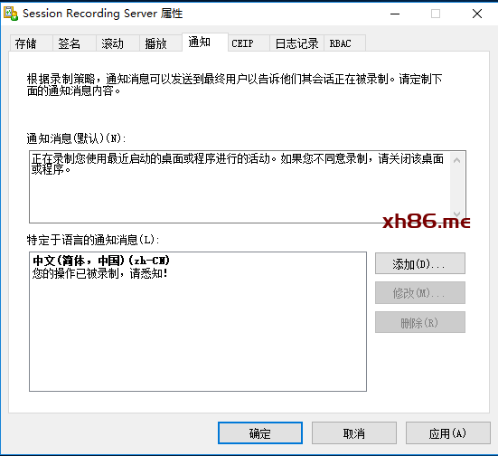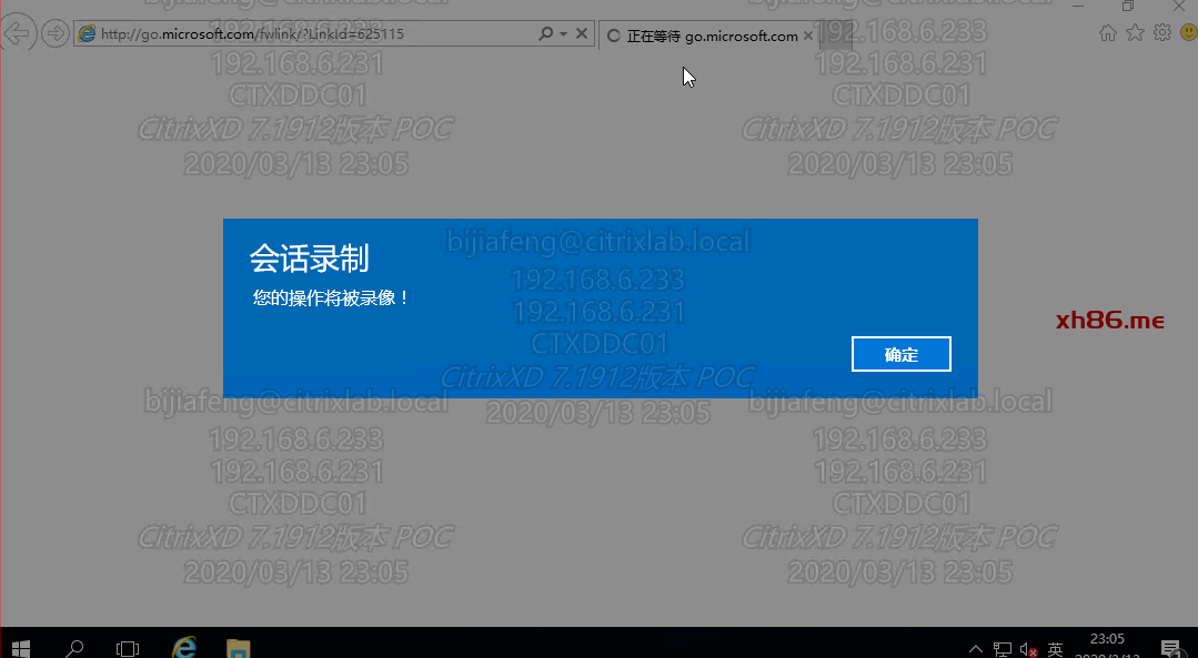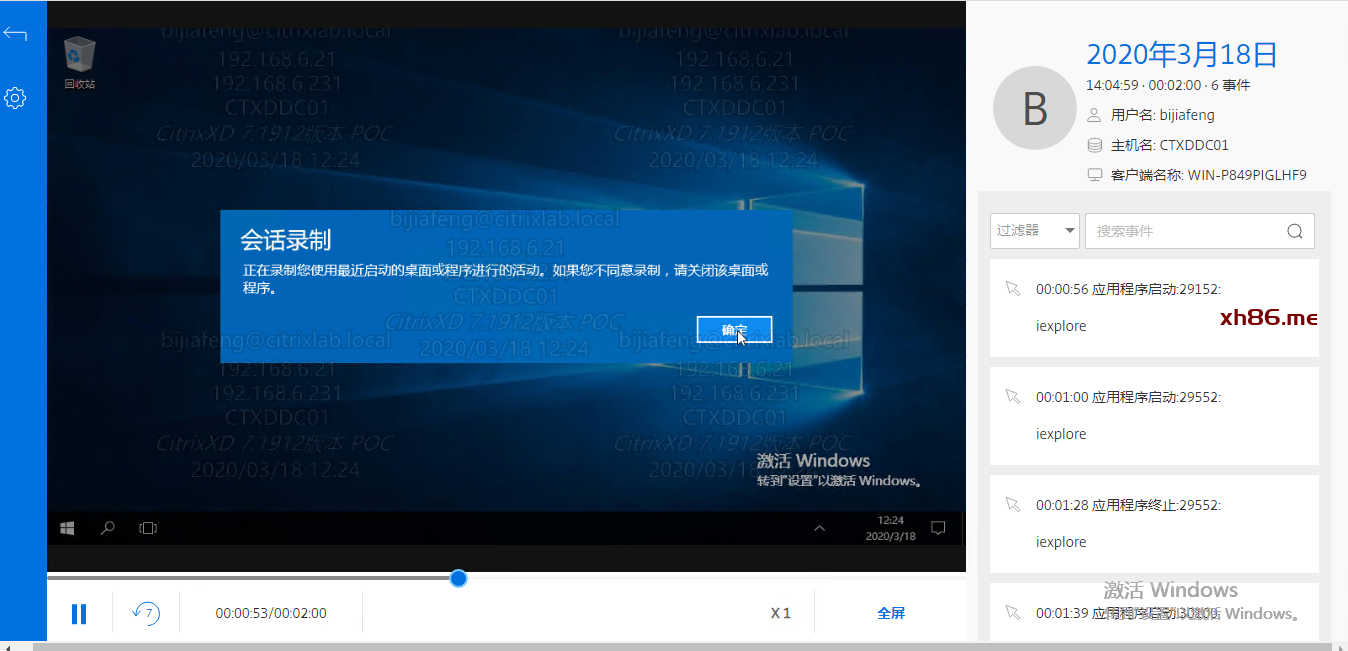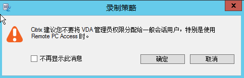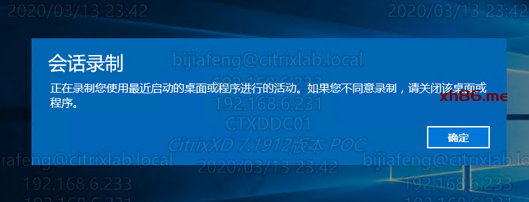 | 重启系统,通过Receiver进行登录,提示相关会话录制操作就说明策略配置成功。
