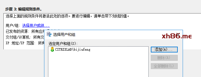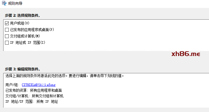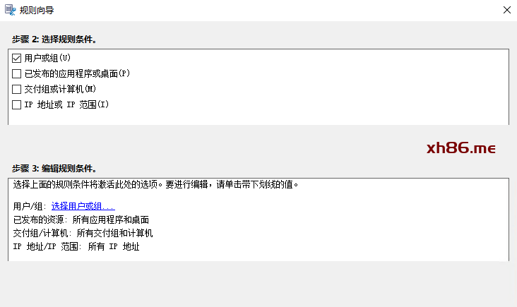 配置规则,我这里使用用户或组来测试效果