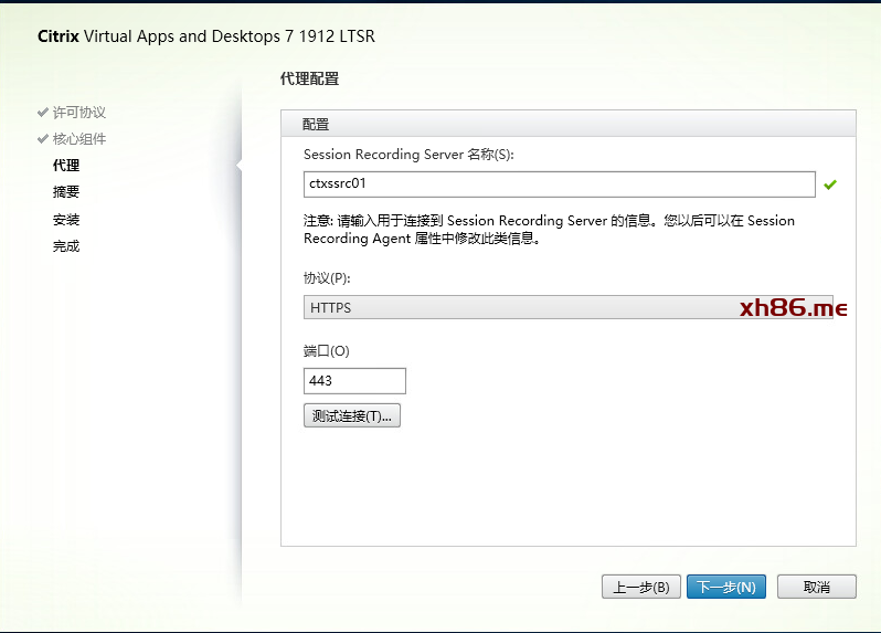 输入服务器地址:ctxssrc01,协议选择HTTTPS,并点击测试连接,