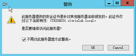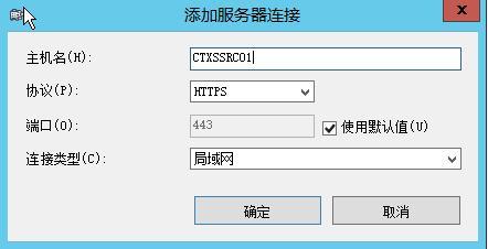 输入服务器地址:ctxssrc01,协议选择HTTTPS,点击确定,