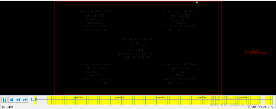 在浏览器打开https://ctxssrc01.citrixlab.local/WebPlayer, 输入有播放权限的账号密码,权限参考本文1.3策略部分。登陆后可看到如下页面。