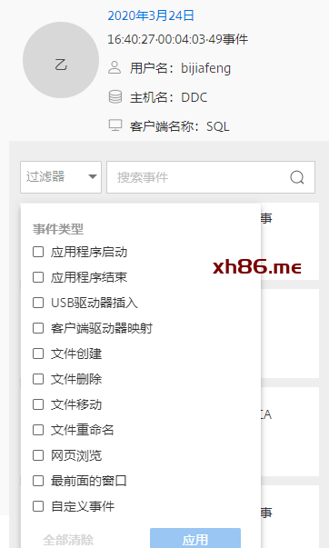 点击事件过滤器可根据过滤器搜索相关事件点进行播放。