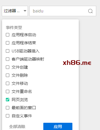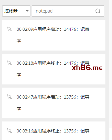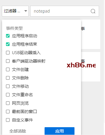 再比如我们查看用户应用程序使用情况,这里我以notepad记事本为例,首先选中应用程序启动和结束,关键词输入notepad,注意这里需要输入应用程序进程名。