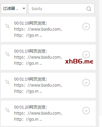 我们可以看到所有网页浏览包含baidu关键词的事件都会显示出来,这样我们就可以根据事件定位到事件的时间点进行播放